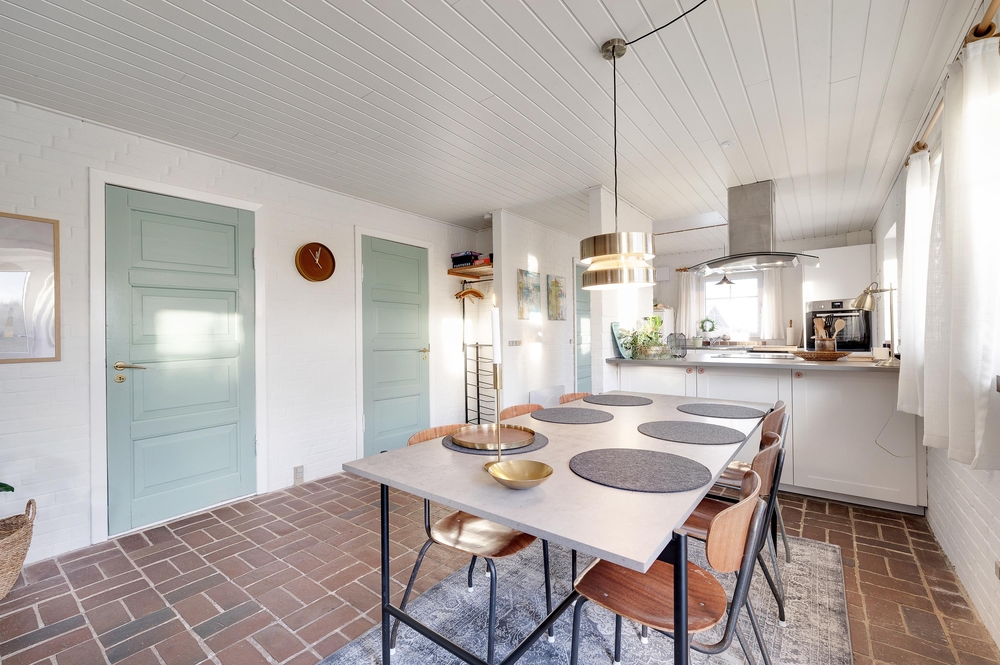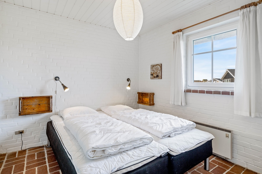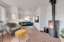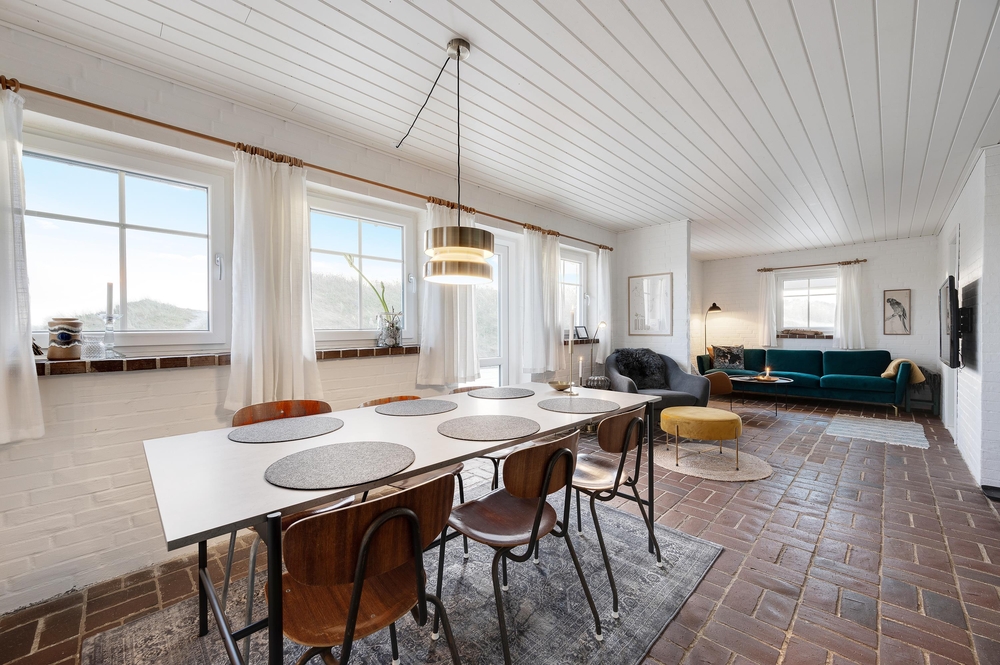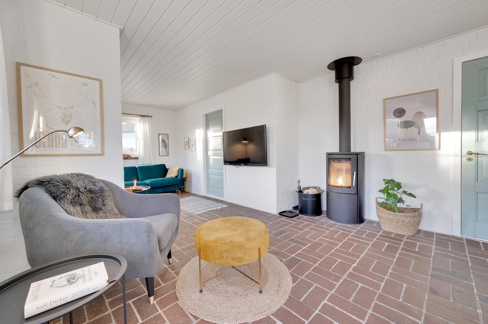 Im Zentrum des Ferienhauses im Auroravej 40 steht der lichtdurchflutete Wohnraum mit Klinkerboden, von dem alle anderen Räume erreichbar sind. Der typisch skandinavische Einrichtungsstil in natürlichen Farbtönen und die liebevoll ausgewählte Einrichtung bilden ein harmonisches Gesamtbild und sorgen für eine gemütliche Atmosphäre.
