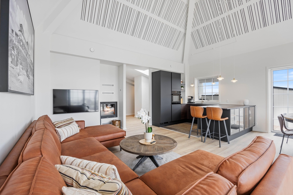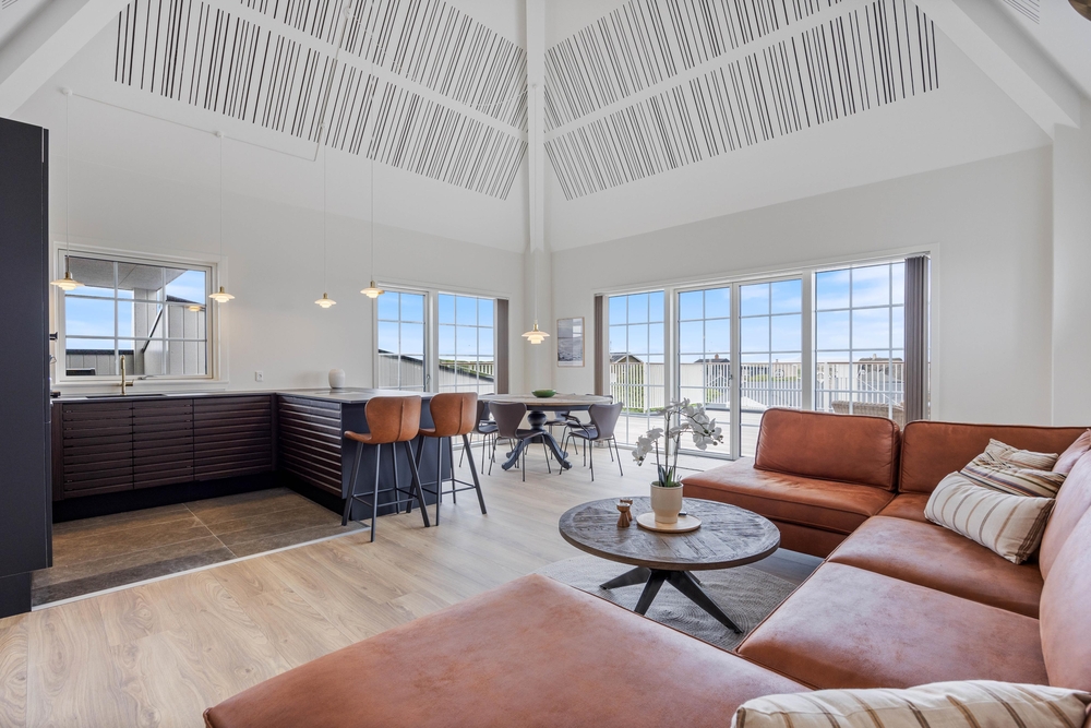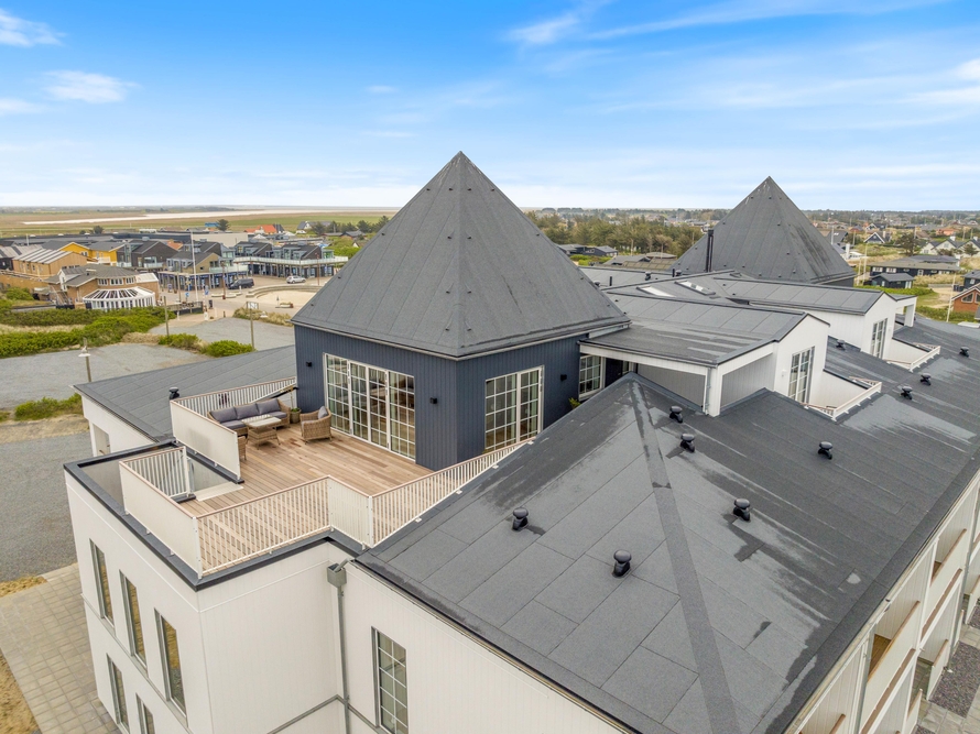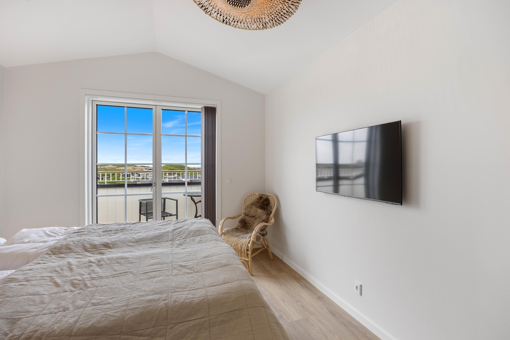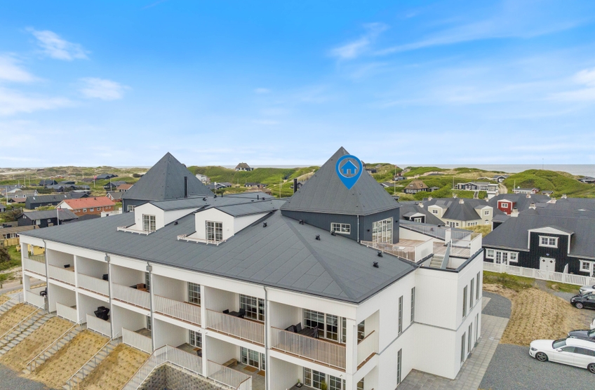 In dem 2024 errichteten Neubau im Badevej 18 befindet sich eine top moderne 112 m2 große Ferienwohnung mit Meeresblick. Die Ferienwohnung bietet Platz für bis zu 4 Personen und lässt mit ihrer Dachterrasse, Whirlpool und Sauna keine Wünsche offen. Ein weiteres Highlight ist die Lage, mitten im Zentrum von Søndervig und nur 200 Meter von der Nordsee und dem herrlichen Sandstrand entfernt. Es gibt außerdem viele Ausflugsziele und Einkaufsmöglichkeiten. Fahrer von E-Autos haben die Möglichkeit ihr Fahrzeug an einer der 4 Ladestationen auf dem Gemeinschaftsparkplatz zu nutzen. Es werden eigene Ladekabel/Adapter benötigt.