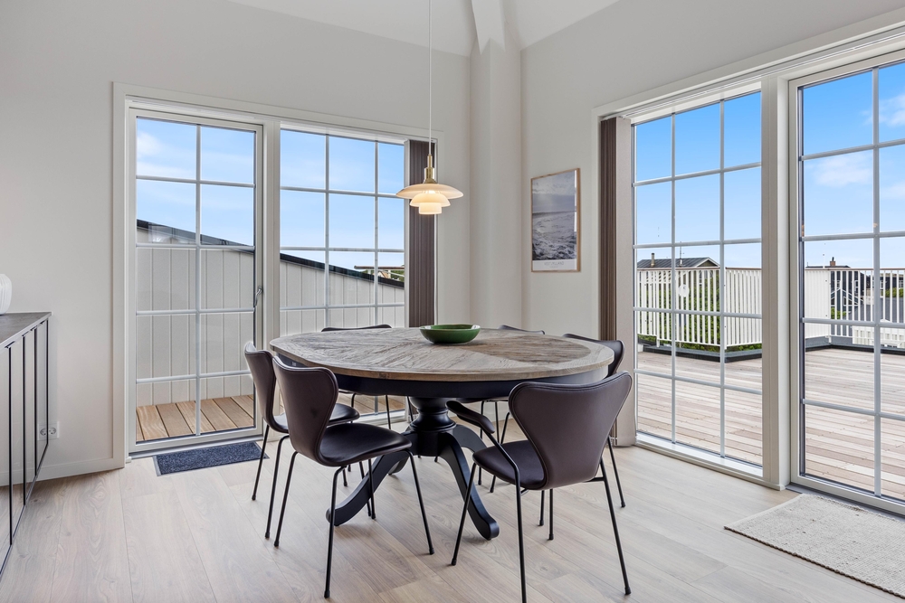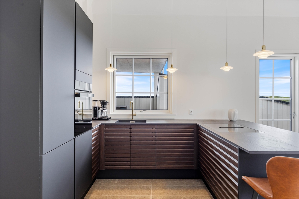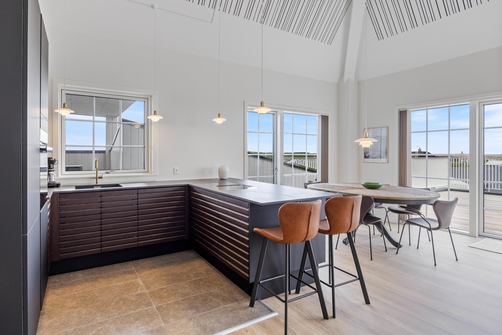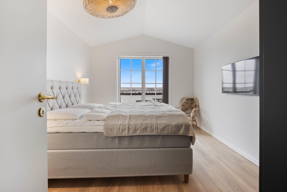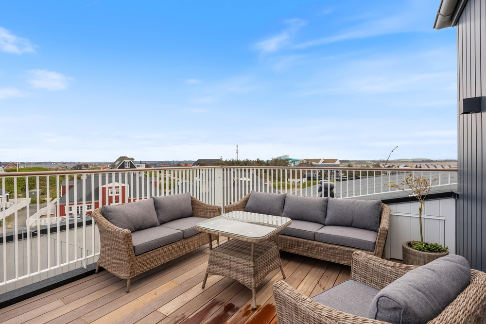In dem 2024 errichteten Neubau im Badevej 18 befindet sich eine top moderne 112 m2 große Ferienwohnung mit Meeresblick. Die Ferienwohnung bietet Platz für bis zu 4 Personen und lässt mit ihrer Dachterrasse, Whirlpool und Sauna keine Wünsche offen. Ein weiteres Highlight ist die Lage, mitten im Zentrum von Søndervig und nur 200 Meter von der Nordsee und dem herrlichen Sandstrand entfernt. Es gibt außerdem viele Ausflugsziele und Einkaufsmöglichkeiten. Fahrer von E-Autos haben die Möglichkeit ihr Fahrzeug an einer der 4 Ladestationen auf dem Gemeinschaftsparkplatz zu nutzen. Es werden eigene Ladekabel/Adapter benötigt.