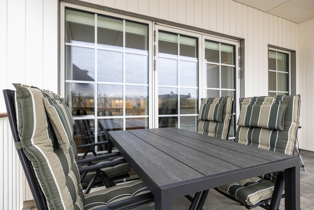 Ihr findet auf jedem Stockwerk eine überdachte und abgeschirmte Terrasse. Je nach Tageszeit könnt ihr den Sonnenaufgang oder den Sonnenuntergang auf eurer Terrasse beobachten. Beide Terrassen sind mit Gartenmöbeln ausgestattet und auf der unteren Terrasse befindet sich der Elektrogrill. Was gibt es Schöneres, als an einem lauen Sommerabend zu grillen, ein Kaltgetränk zu genießen und dabei im Hintergrund dem Rauschen der Wellen zu lauschen.