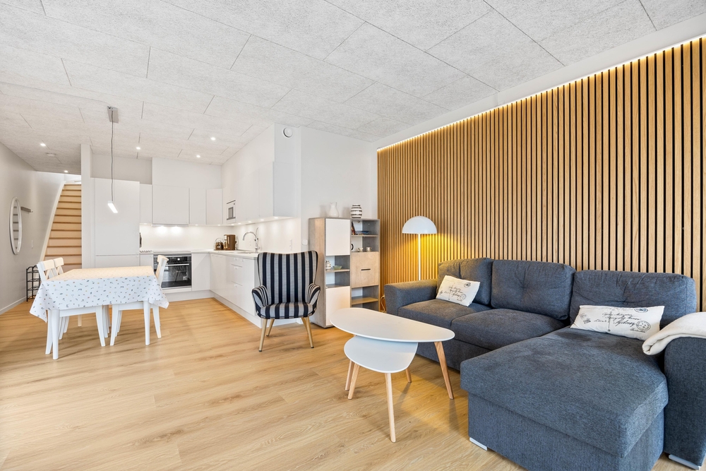 Euer Urlaubsfeeling beginnt, wenn ihr diese moderne Ferienwohnung betretet. Die Einrichtung ist sehr geschmackvoll und bietet alles, was man für den entspannten Urlaub braucht. Das Wohnzimmer ist mit der Küche verbunden, sodass sich keiner beim Essenzubereiten ausgeschlossen fühlen muss. Hier kann man alles zusammen machen. Die Geschirrspülmaschine erledigt den Abwasch für euch, damit ihr die schönen Urlaubsmomente voll auskosten könnt. Wenn ihr gerne Radio hört, findet ihr dieses im Fernseher.