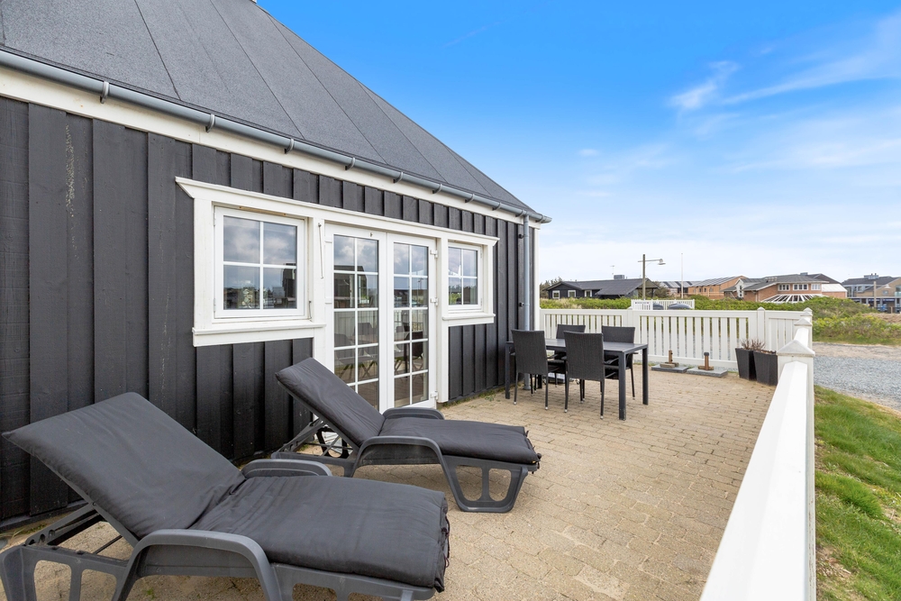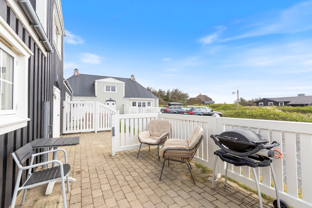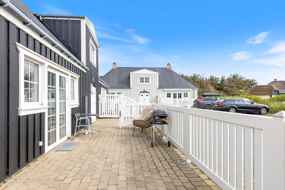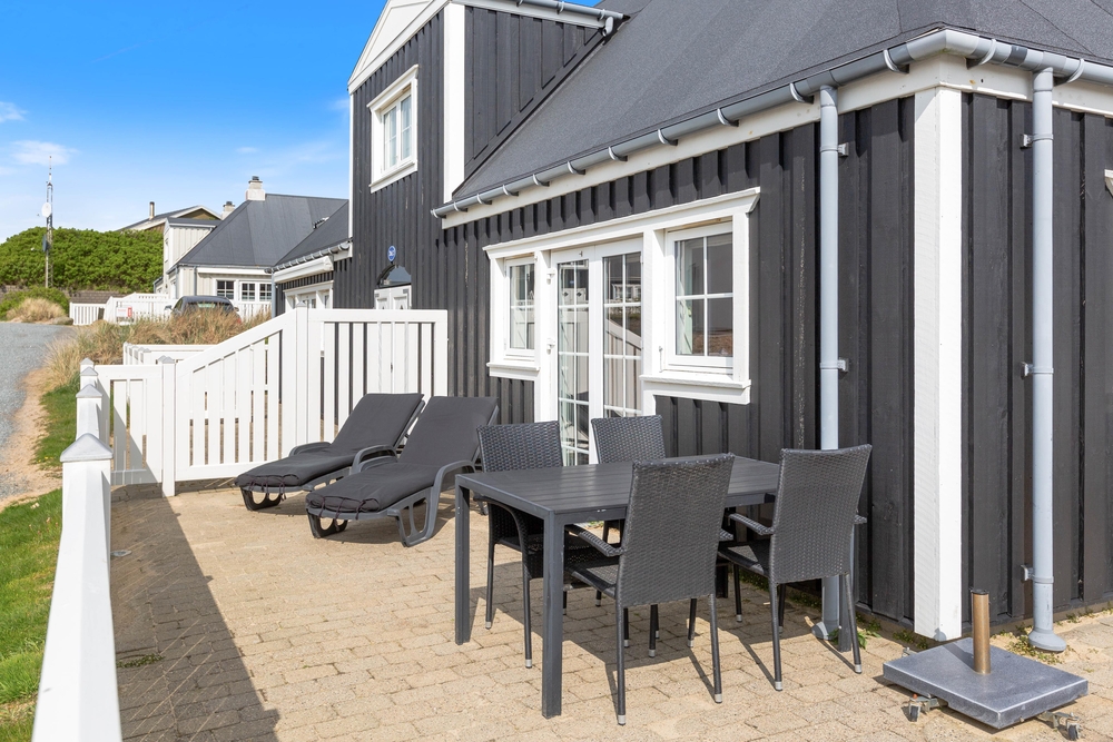 Vom Wohnbereich aus gelangt ihr auf die geschlossene Sonnenterrasse, auf der ihr die sonnigen Ferientage so richtig genießen könnt. Die Terrasse verläuft rund um die Ferienwohnung, sodass ihr immer ein gutes Plätzchen findet, um sich auf den Gartenmöbeln und Sonnenliegen niederzulassen ? und euer Hund findet immer ein schattiges Plätzchen. Wenn der Abend naht, holt ihr den Grill heraus. Grillt ein paar leckere Steaks, trinkt ein Kaltgetränk und lasst den Tag mit Essen, Urlaub und Gesellschaft ausklingen. Beendet den Tag mit einem Ausflug zum Strand, wo ihr einen unvergesslichen Sonnenuntergang von der Spitze der Dünen aus beobachten könnt.