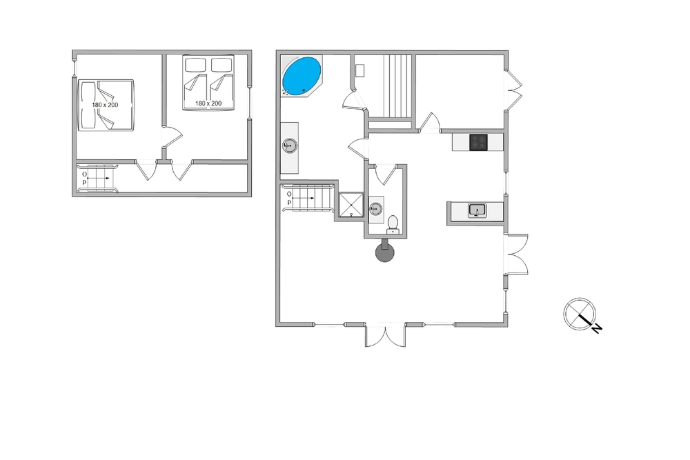 In der 1. Etage befinden sich 2 Schlafzimmer mit jeweils 1 Doppelbett und versprechen erholsame Nächte. Das Badezimmer verfügt über eine Fußbodenheizung und einen Whirlpool und eine Sauna für wohltuende Entspannung. Macht es euch nach einem langen Tag am Strand vor dem gemütlichen Kaminofen bequem und genießt die wohlige Wärme.