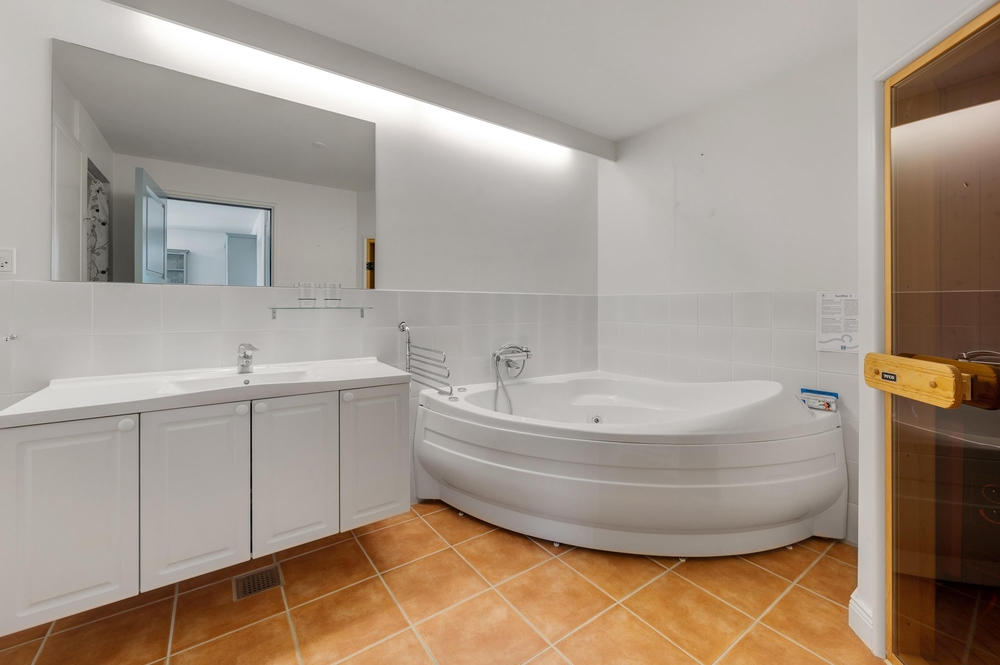 Freut euch auch auf eine erholsame Zeit im Wellnessbereich. Genießt das sprudelnd warme Wasser im Whirlpool, lehnt euch in der Sauna zurück und lasst die Sorgen des Alltags hinter euch. Selbst vor kalten Füßen braucht ihr euch nicht zu fürchten, denn das Badezimmer und die separate Toilette sind mit einer Fußbodenheizung ausgestattet.