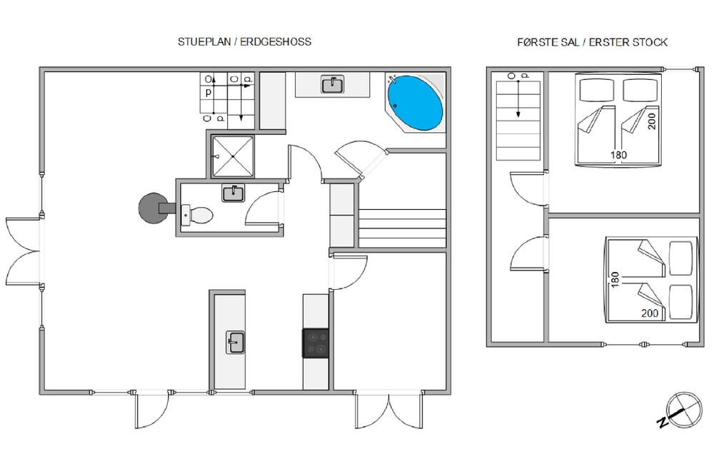Im 1. Stock befinden sich die beiden Schlafzimmer, die mit jeweils einem Doppelbett ausgestattet sind. Hier könnt ihr euch nach einem aufregenden Tag zurückziehen und eure Akkus wiederaufladen.
