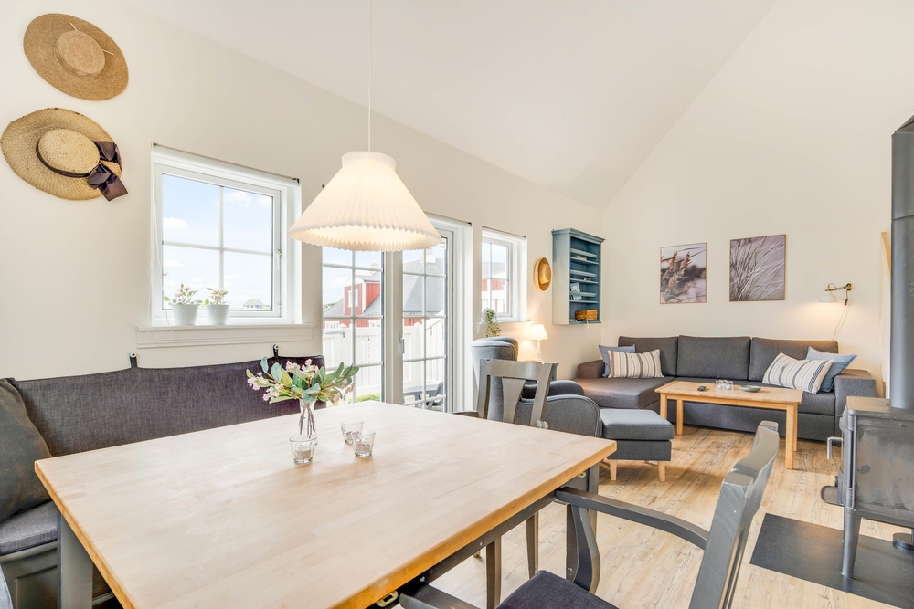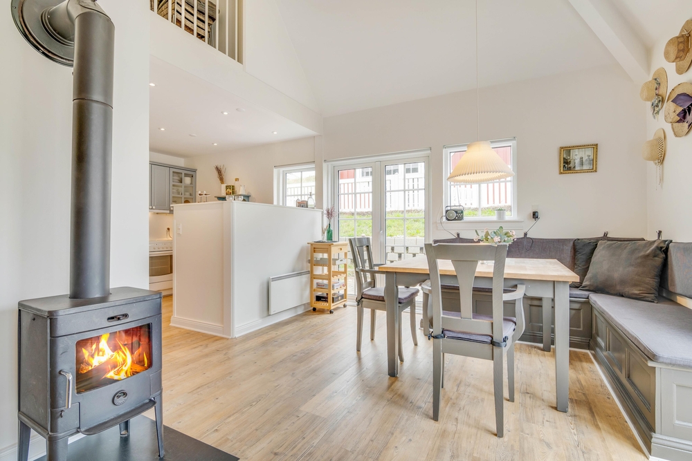 Im Wohnzimmer könnt ihr gemütliche Stunden vor dem Fernseher verbringen, und für die richtige Urlaubsatmosphäre im Haus sorgt zudem ein Holzofen. In der Küche steht ein Geschirrspüler bereit, der nach dem Abendessen den Abwasch für euch übernimmt.