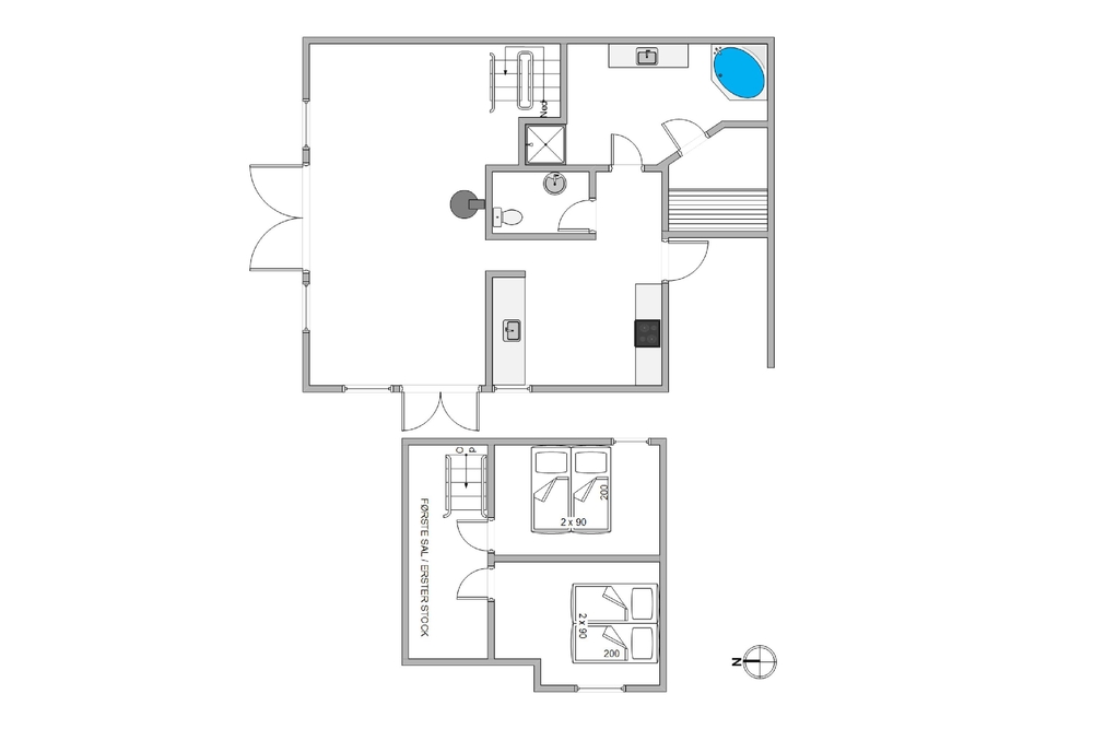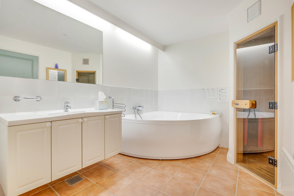 In eurem Urlaub könnt ihr euch vollkommen entspannen. Im Badezimmer habt ihr dazu ausreichend Möglichkeiten, da euch hier ein Whirlpool und eine Sauna zur Verfügung stehen. Neben dem großen Badezimmer befindet sich im Ferienhaus auch eine Gästetoilette ? beide haben eine Fußbodenheizung, sodass die ihr keine kalten Füße bekommt. Im Ferienhaus findet ihr 2 Schlafzimmer mit jeweils einem Doppelbett, wo ihr euch nachts von euren Ausflügen an der frischen Seeluft erholen könnt.