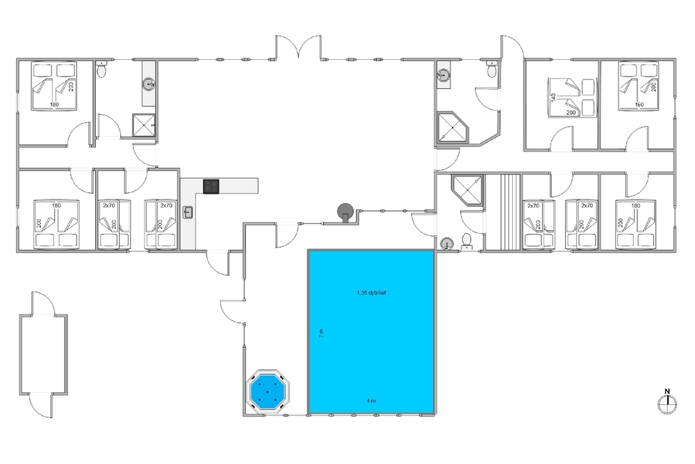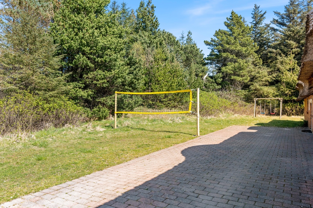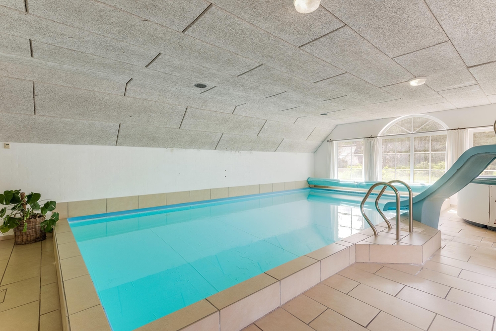 Ihr plant einen Urlaub mit der ganzen Familie oder wollt mit euren Freunden aktive und schöne Tage an Strand, Meer und inmitten der schönen Natur Westjütlands verbringen ? dann willkommen in Husby! Die Lage in Husby, etwas oberhalb der bekannten Ferienregion vom Ringkøbing Fjord, ist nicht so bekannt aber unbedingt einen zweiten Blick wert! Highlight dieses Ferienhauses unter Reet sind ganz klar der Pool mit Rutsche, die Sauna sowie der große Standwasserwhirlpool ca. 32 qm.