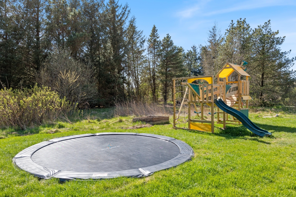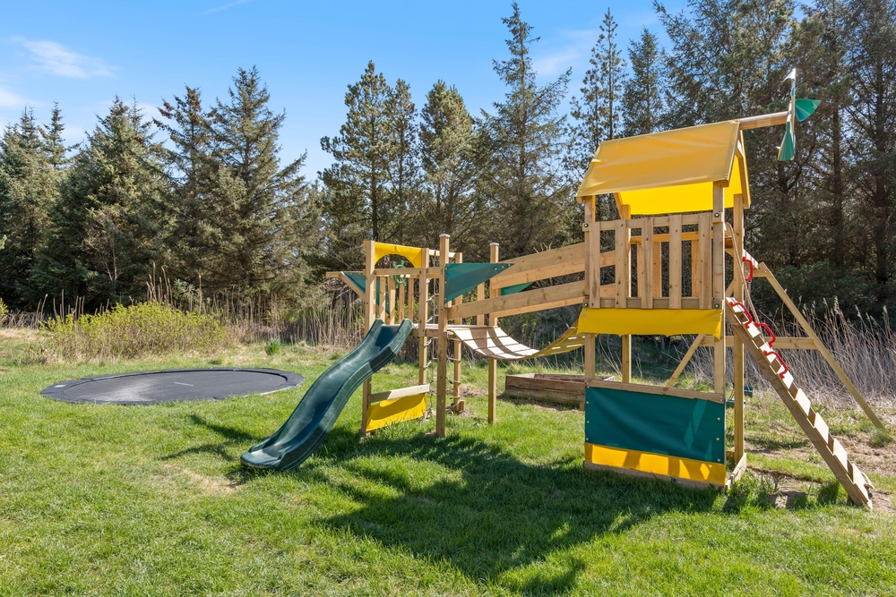Die Kinder und Hunde haben sicherlich noch das eine oder andere Abenteuer vor sich. Schließlich gilt es, das über 5000 Quadratmeter große Grundstück ausgiebig zu erkunden, zu Schaukeln, Fußball, Fangen oder Verstecken zu spielen! Für die Kinder, die gern klettern und rutschen findet ihr auf dem Grundstück auch einen schönen Spielturm und ein in den Boden eingelassenes Trampolin.