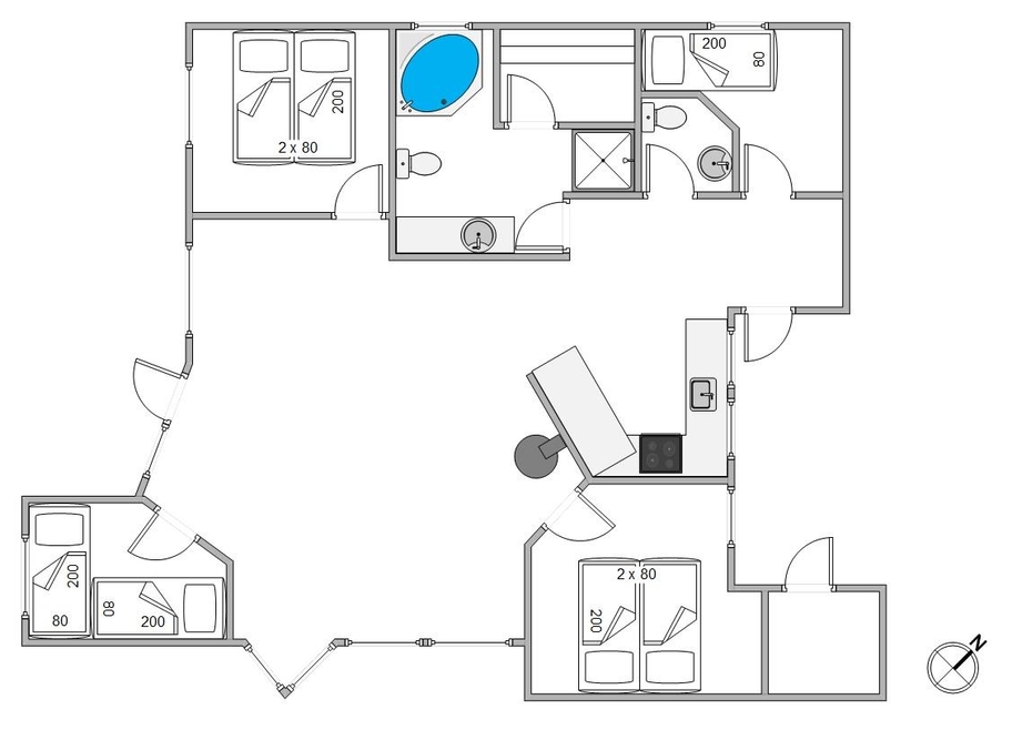 So habt ihr mehr Zeit für euch und könnt z. B. im Whirlpool entspannen oder einen Saunagang genießen. Diese befinden sich im Tageslichtbad mit Dusche. Es gibt aber zusätzlich auch noch ein praktisches Gäste-WC, so dass ihr euch gut aufteilen könnt. Gut erholt werdet ihr bestimmt gut schlafen. Hierfür stehen euch 2 Schlafzimmer mit bequemen Doppelbetten, sowie 2 Schlafzimmer mit insgesamt 3 Einzelbetten zur Verfügung.
