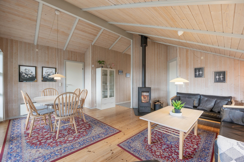 Im Zentrum dieses gemütlichen Ferienhauses steht der Wohnbereich mit offener Küche und Essplatz. Die Dachschrägen, der schöne Holzboden und die mit Liebe zum Detail ausgewählte Einrichtung, setzen sich zu einem stimmigen Gesamtbild zusammen.