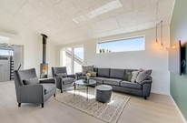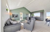 Das Zentrum des Ferienhauses bildet der große und schicke Wohnbereich kombiniert mit der offenen Küche. Die großen Fensterfronten im Wohnbereich geben nicht nur eine fantastische Aussicht auf die umliegende Natur frei, sondern liefern auch viel Licht.