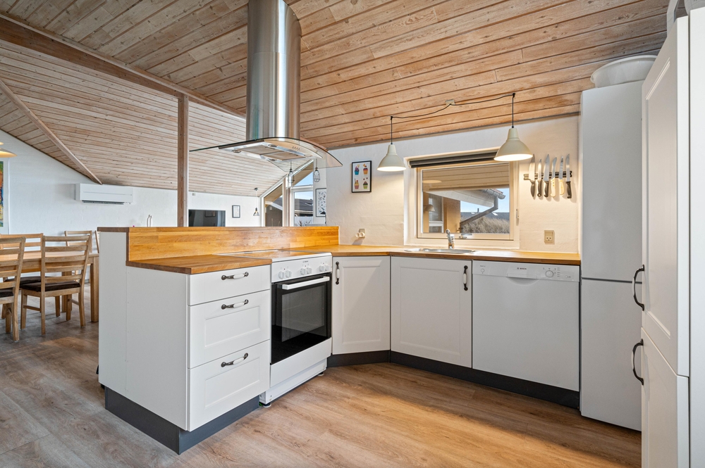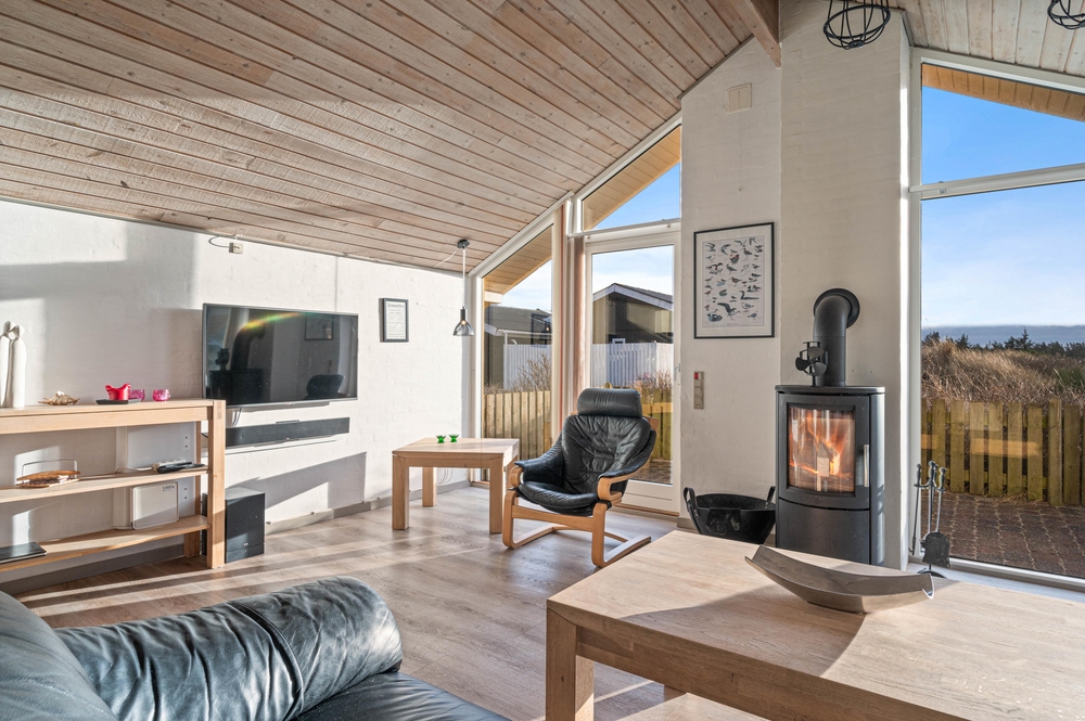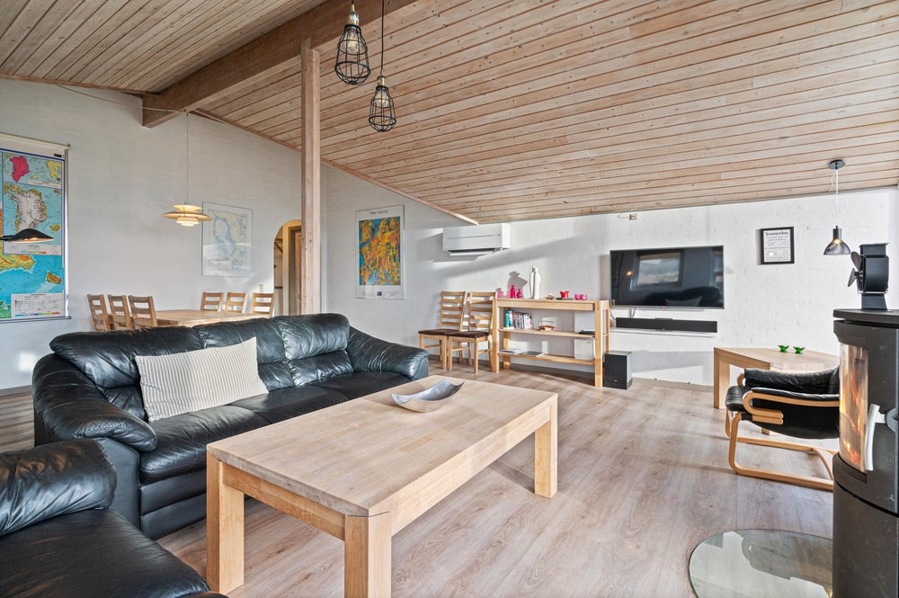 Das Ferienhaus ist gemütlich eingerichtetet und lädt zu einem erholsamen Urlaub mit der Familie ein. Das Herz des Hauses ist der offene Wohn- und Küchenbereich, in dem der Kaminofen an kälteren Tagen nicht nur Wärme spendet sondern auch für eine gemütliche Stimmung sorgt.