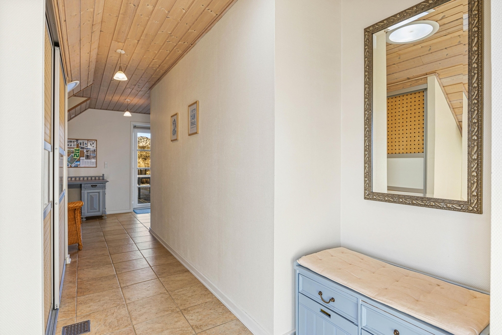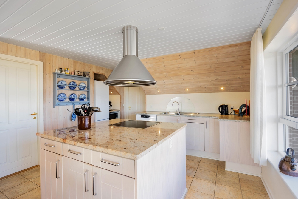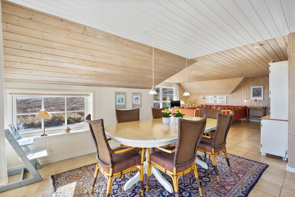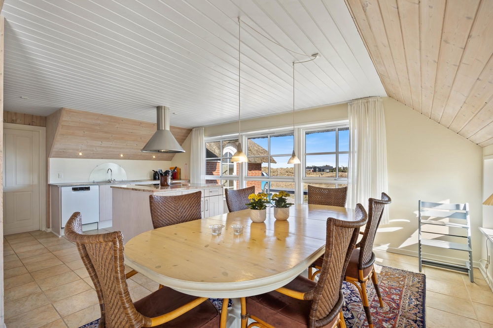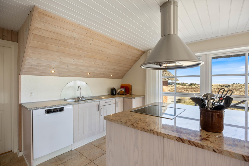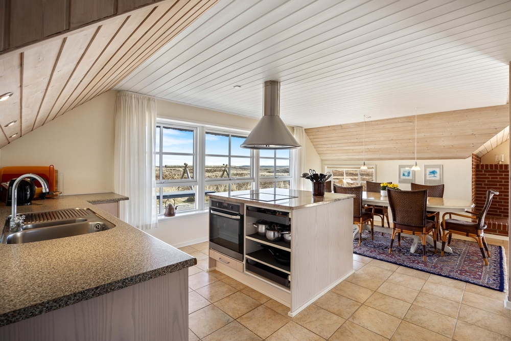 Aus dem gemütlichen Wohnzimmer blickt Ihr direkt auf endlose Heideflächen und die hohen Dünen, hinter denen sich der weitläufige Sandstrand der dänische Westküste befindet. Die gut eingerichtete Küche und der schöne Wohnraum sind offen kombiniert, so dass ihr viele schöne Stunden mit der gesamten Familie verbringen könnt. Hier gibt es Klinkerfußboden und Fußbodenheizung.