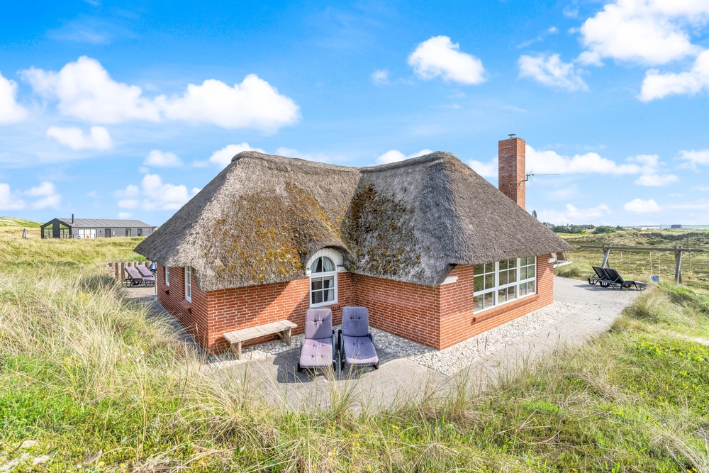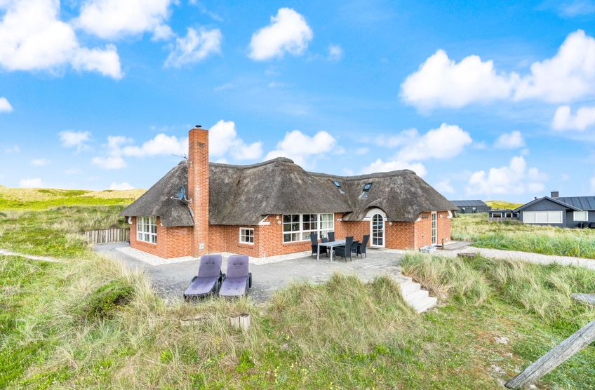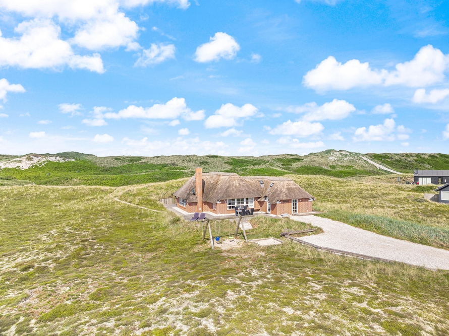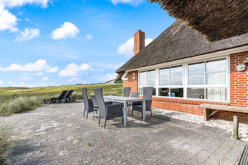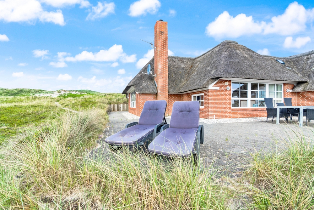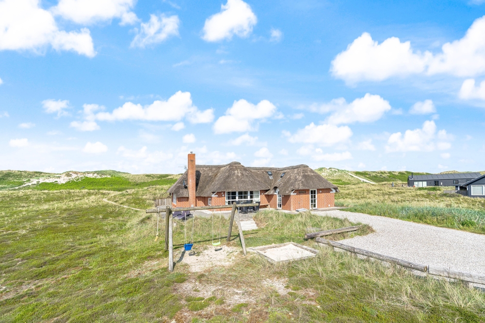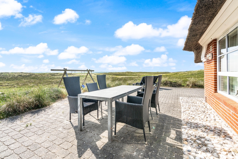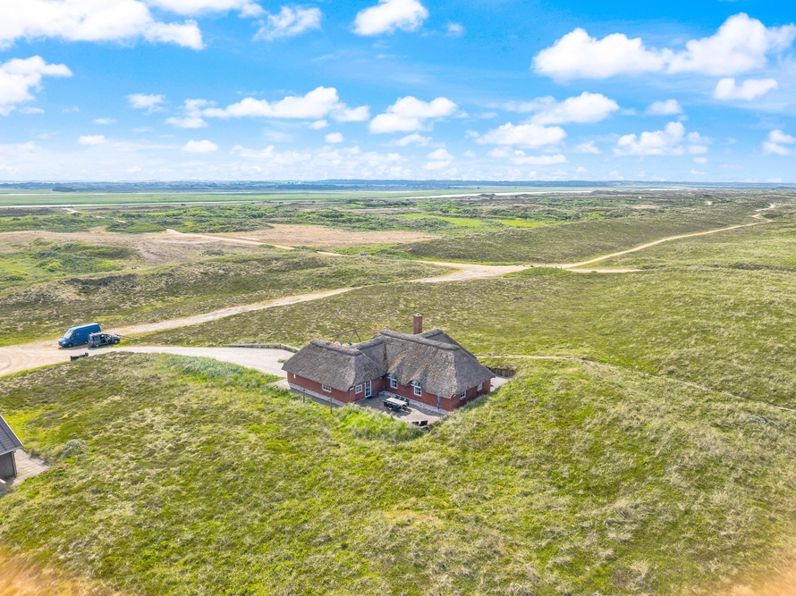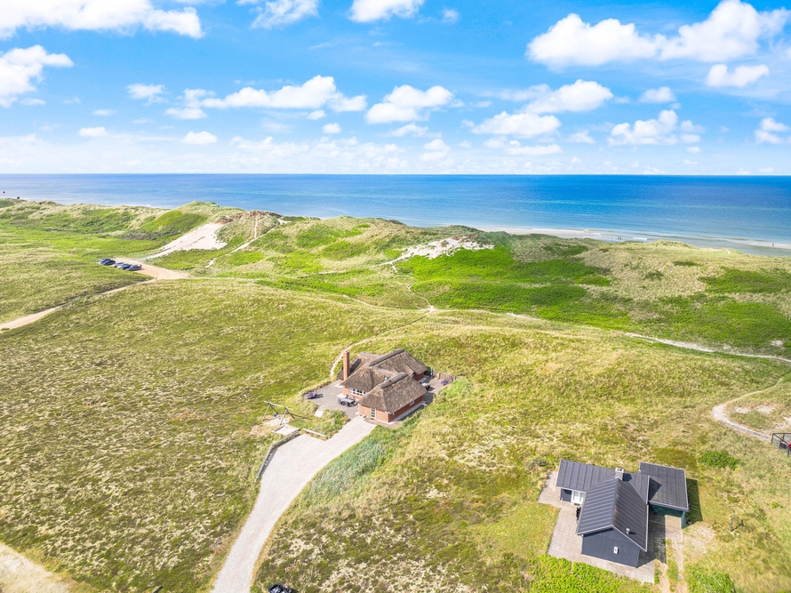 besitzt eine ganz einmalige Lage mitten in der schönen westjütländischen Natur, in der Nähe von Nymindegab und direkt an einem großen Heidegebiet. Es liegt absolut ruhig und ist von natürlich abgeschirmten Terrassen umgeben. Hier stehen Gartenmöbel, Liegestühle und ein Grill zur Verfügung. Eine richtige Perle, die man erlebt haben muss!