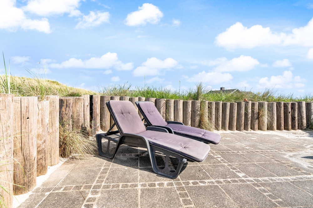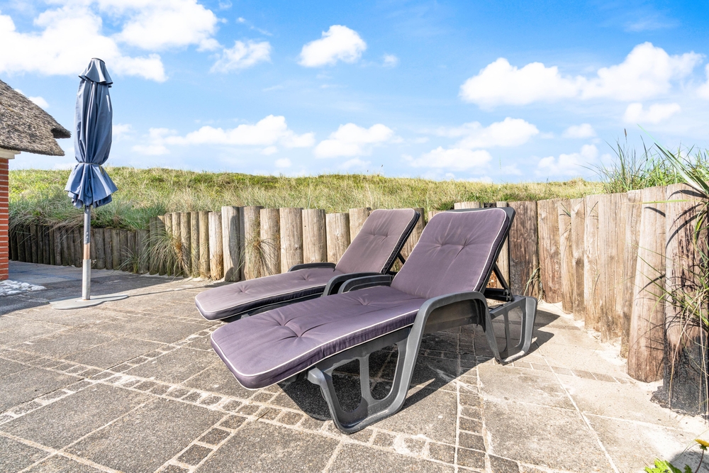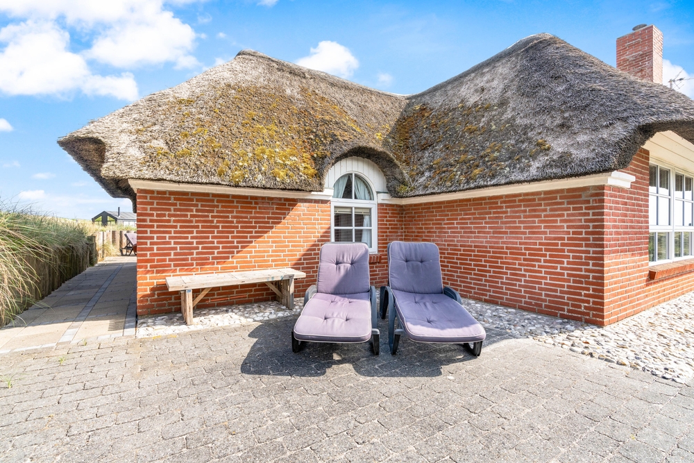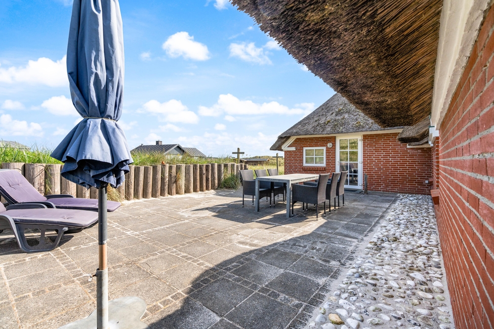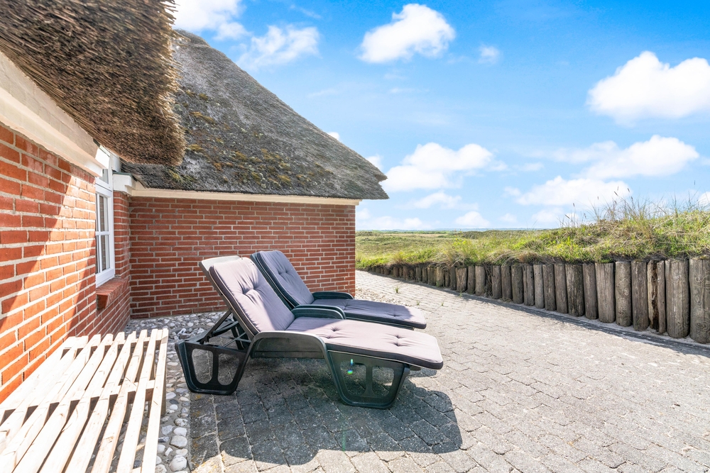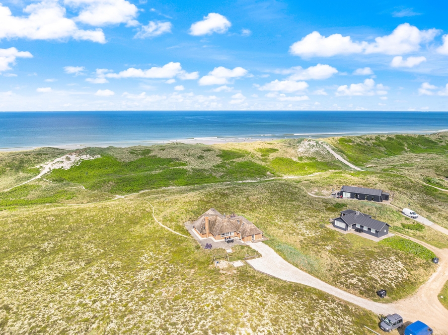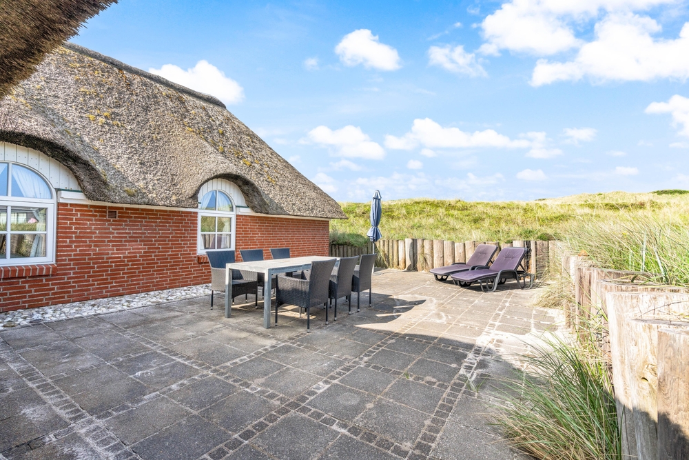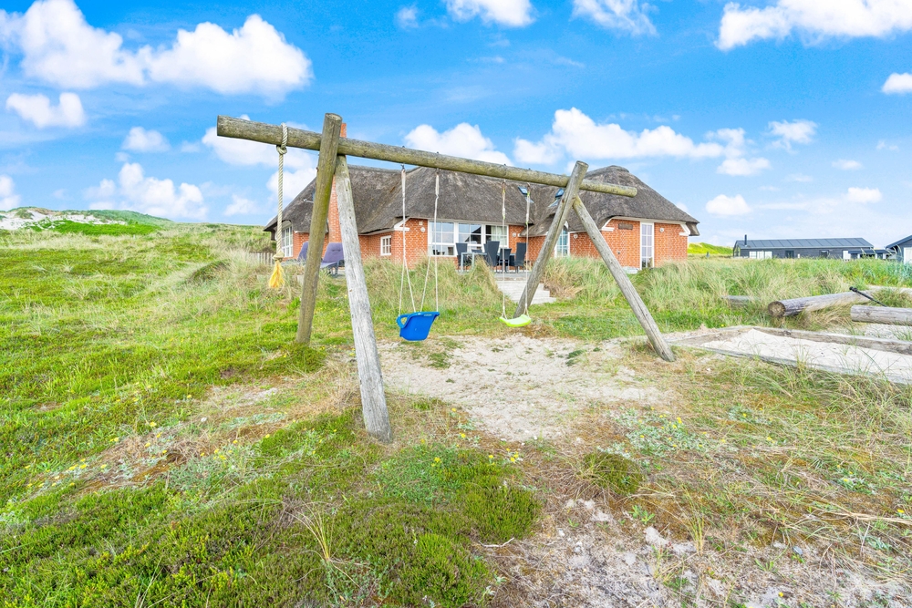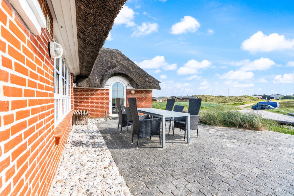 besitzt eine ganz einmalige Lage mitten in der schönen westjütländischen Natur, in der Nähe von Nymindegab und direkt an einem großen Heidegebiet. Es liegt absolut ruhig und ist von natürlich abgeschirmten Terrassen umgeben. Hier stehen Gartenmöbel, Liegestühle und ein Grill zur Verfügung. Eine richtige Perle, die man erlebt haben muss!