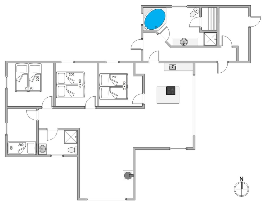 Das Haus verfügt über 4 gute Schlafzimmer, Betten mit Boxspringmatratzen und Holzböden. Es bietet außerdem 2 hübsche Badezimmer, eines mit Whirlpool und Sauna, wo ihr euch nach einem langen Tag am Strand entspannen und die Seele baumeln lassen könnt.