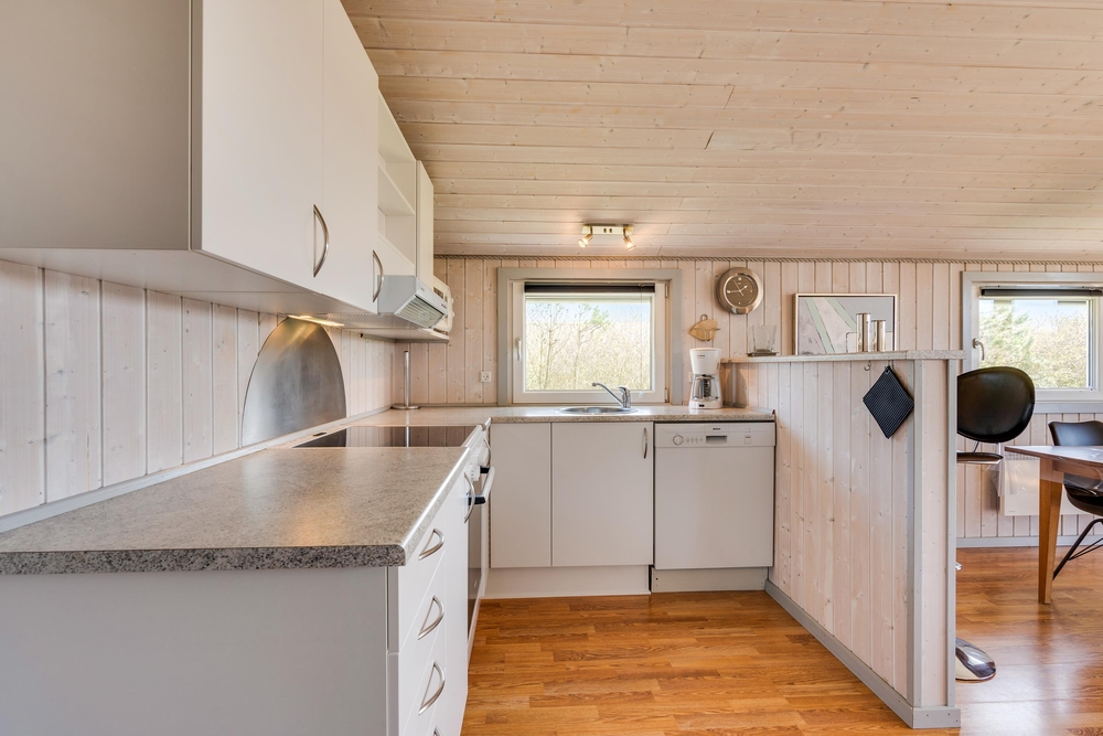 Das Herz des Ferienhauses bildet der offene Wohnbereich, in dem ein Kaminofen für eine gemütliche Atmosphäre sorgt. Diese einladende Ecke ist der perfekte Ort, um gemeinsam entspannte Abende bei einem guten Buch oder einer Tasse Tee zu genießen. Die gut ausgestattete Küche lässt keine Wünsche offen und verfügt über alle notwendigen Geräte, einschließlich einer Spülmaschine, um das Kochen zum Vergnügen zu machen. Ob beim Zubereiten von Lieblingsgerichten oder bei gemeinsamen Mahlzeiten am Esstisch ? hier findet jeder seinen Platz.