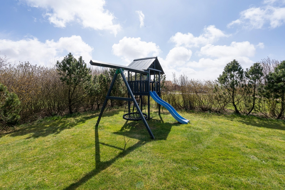 Der Außenbereich des Ferienhauses im Bellisvænget 14 ist darauf ausgelegt, euren Aufenthalt so angenehm wie möglich zu machen und euch die Gelegenheit zu geben, den Urlaub in vollen Zügen zu genießen. Das großzügige Rasengrundstück ist ein wahres Paradies für Kinder, die sich auf der Schaukel und dem Trampolin so richtig austoben können.