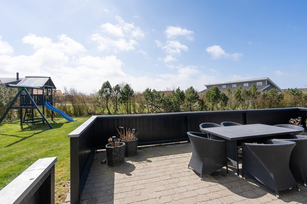 Für entspannte Stunden im Freien lädt die abgeschirmte Terrasse ein, wo ihr ungestört die Sonne genießen und die Ruhe Dänemarks auf euch wirken lassen könnt. Ein Grill steht ebenfalls zur Verfügung, perfekt für gesellige Abende, an denen ihr den Tag mit köstlichen Speisen und schönen Gesprächen ausklingen lassen könnt.