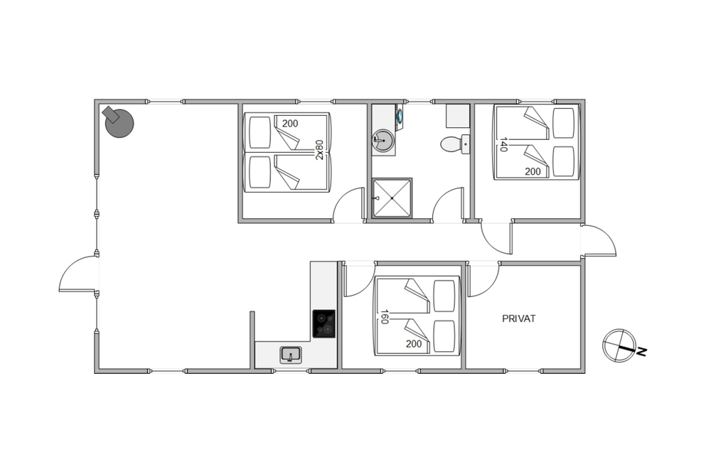 Die 3 Schlafzimmer sind mit komfortablen Doppelbetten ausgestattet und bieten einen ruhigen Rückzugsort für erholsame Nächte. Praktisch ist auch das Badezimmer mit Fußbodenheizung, das für einen angenehmen Start in den Tag sorgt. Annehmlichkeiten wie eine Waschmaschine machen euren Aufenthalt im Bellisvænget 14 noch komfortabler und sorgen dafür, dass es euch an nichts fehlt.