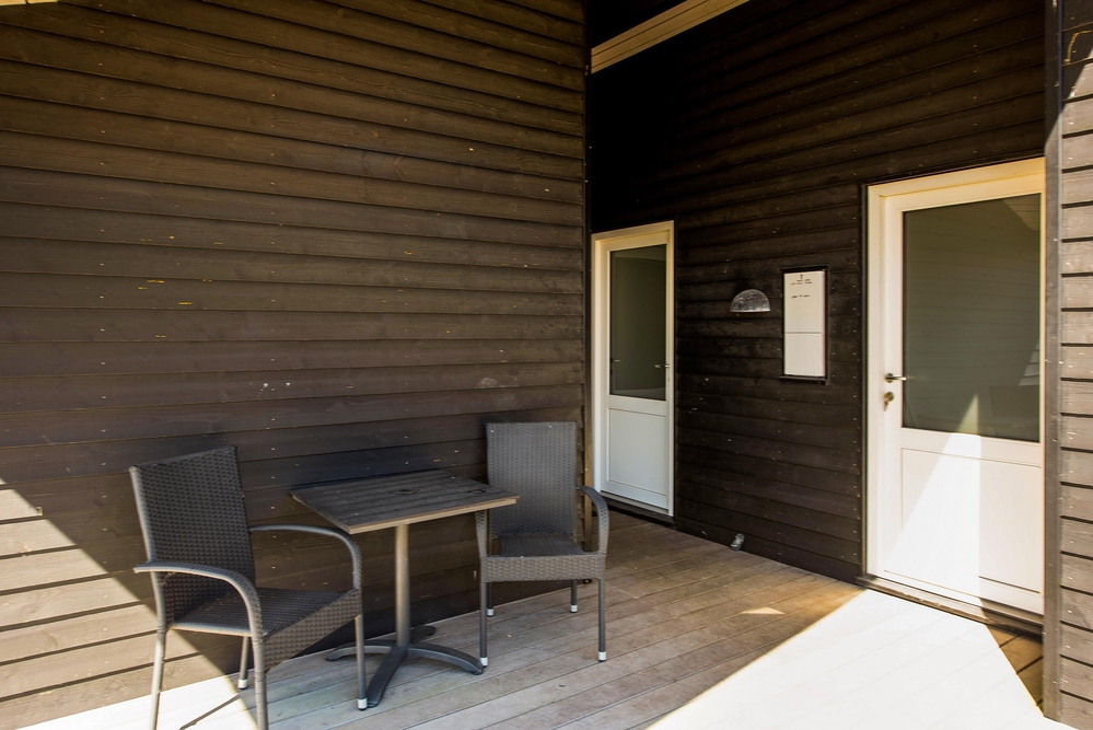 Rund um euren Ferienhaus findet ihr verschiedene Terrassenbereiche, wovon eine teilweise überdacht und eine geschlossen ist. So findet man immer ein geschütztes Plätzchen und kann mit der Sonne wandern. Die geschlossene Terrasse ist praktisch sowohl für die Kleinsten als auch für Hunde, die frei herumlaufen und in der grünen Natur spielen können.
