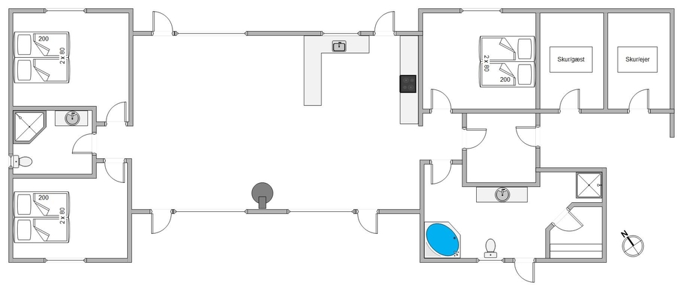 Die große und gut ausgestattete Wohnküche ist das Herzstück des Ferienhauses, wo ihr euch zum gemeinsamen Kochen, gemütlichen Filmeabenden auf dem Sofa oder geselligen Spielrunden treffen könnt. Zündet den Holzofen an und genießt die knisternden Flammen im Hintergrund ? so entsteht die echte Hygge-Atmosphäre.