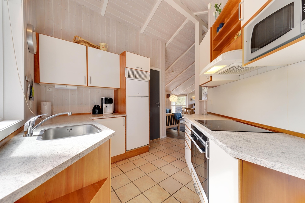 Die Küche ist gut ausgestattet und verfügt u.a. über eine Geschirrspülmaschine, eine Kühlkombination und eine Mikrowelle. Für eine angenehme Raumtemperatur sorgt die energiesparende Wärmepumpe.