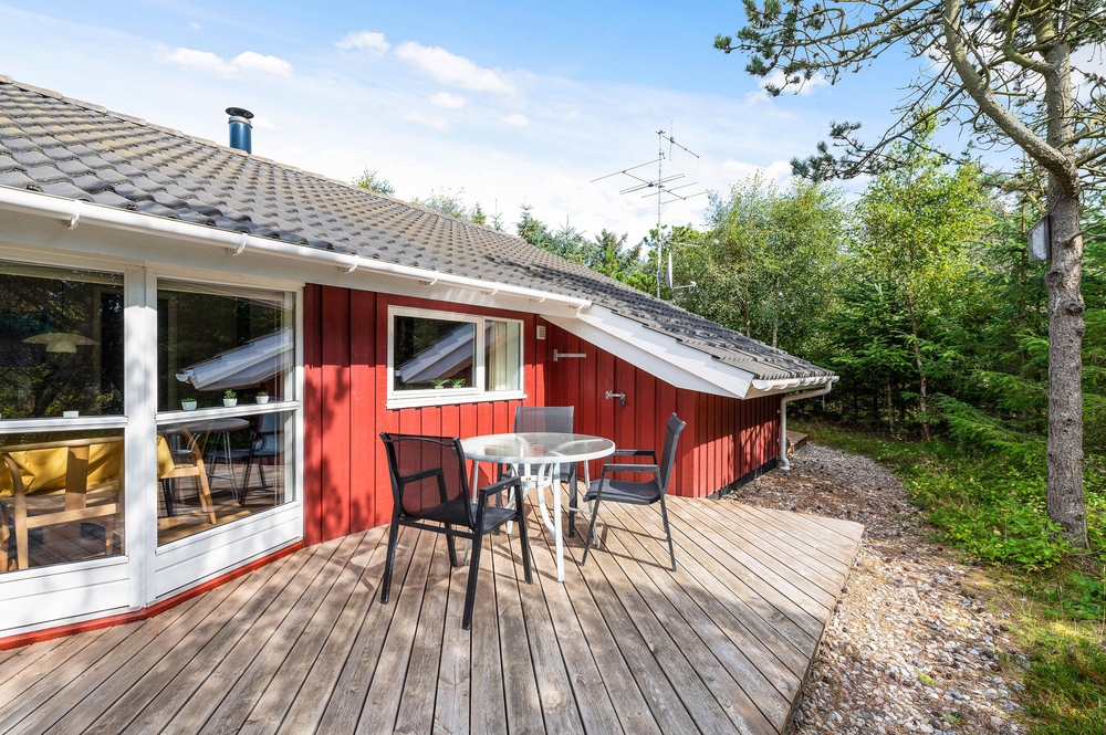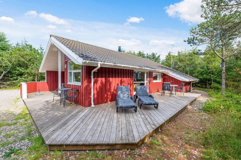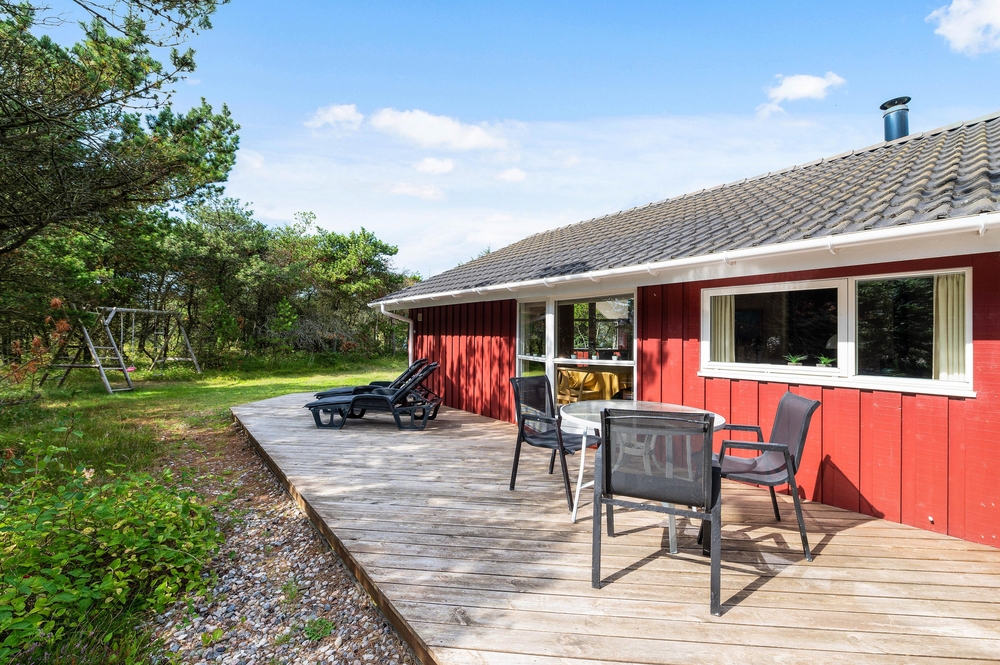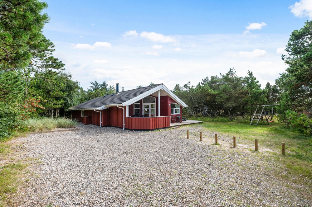 Das hübsche skandinavische Holzhaus liegt nur 800 m vom breiten Nordseestrand entfernt, wo ihr lange Spaziergänge machen könnt oder die Kinder Sandburgen bauen und einen Drachen steigen lassen können. Ihr könnt aber auch auf Naturradpfaden durch die Ferienhaussiedlungen und entlang des Dünengürtels Radtouren nach Hvide Sande oder Nymindegab machen.