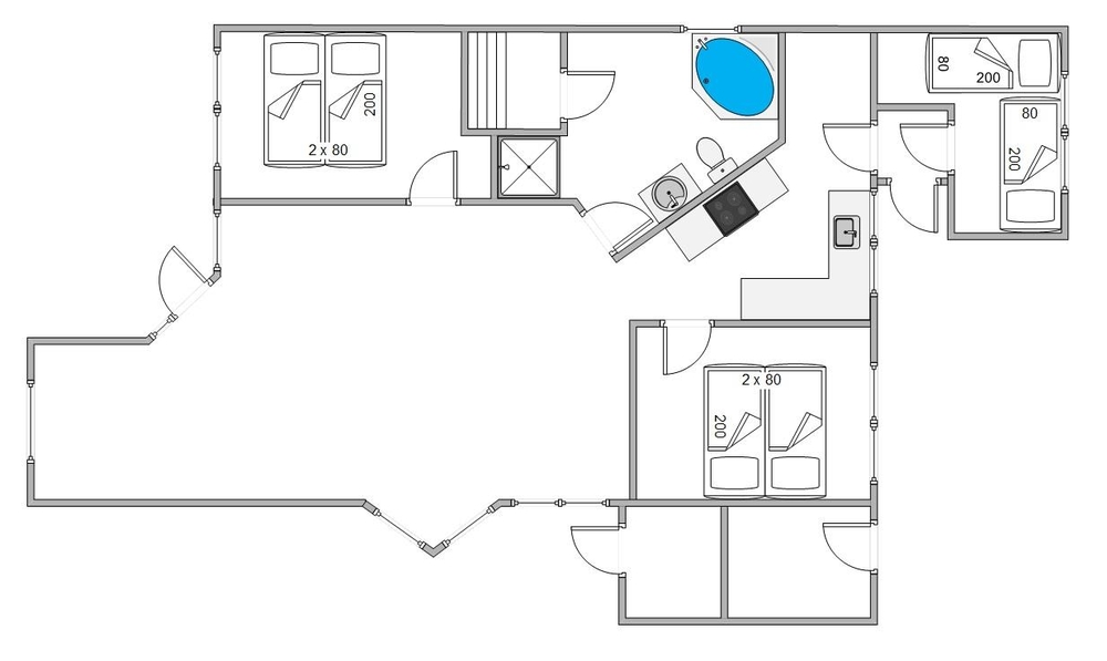 Vom Wohnzimmer aus geht ihr direkt auf eine der vielen Terrassen. Auf der teilweise überdachten Terrasse könnt ihr lange Grillabende verbringen. Um das gesamte Haus herum befinden sich mehrere Terrassen, sodass ihr je nach Bedarf mit der Sonne oder dem Schatten mitziehen könnt.