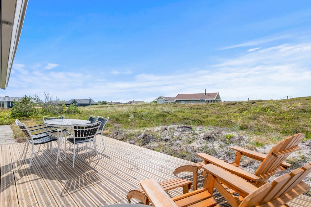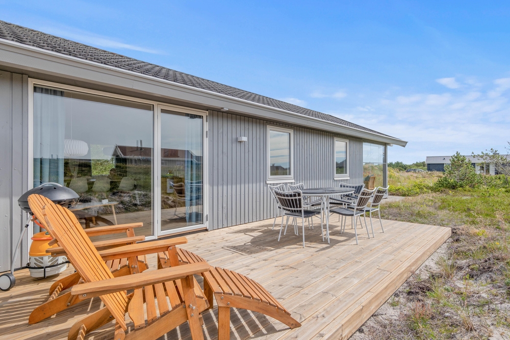 Im Außenbereich eures gemütlichen Ferienhauses laden euch ein Grill und bequeme Gartenmöbel zu einem entspannten Grillabend ein, während die Sonne hinter den Dünen untergeht und den erlebnisreichen Urlaubstag beendet.