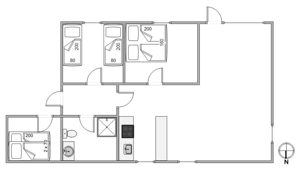Nachdem ihr den Abend bei einem leckeren Abendessen am großen Esstisch ausklingen lassen habt, sorgen drei Schlafzimmer mit einem Doppelbett und zwei Einzelbetten für eine erholsame Nachtruhe. Das Badezimmer in Ferienhaus ist praktischerweise mit einer Fußbodenheizung ausgestattet. In der offenen Küche mit Spülmaschine und Mikrowelle findet ihr am nächsten Morgen viel Platz für das Zubereiten eines leckeren Frühstücks.