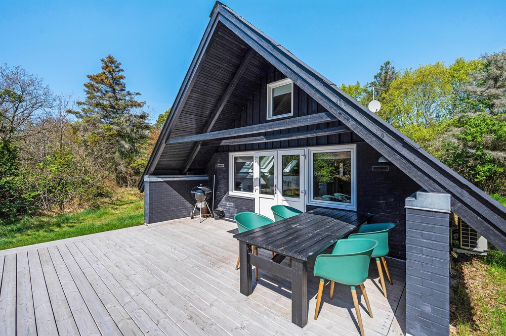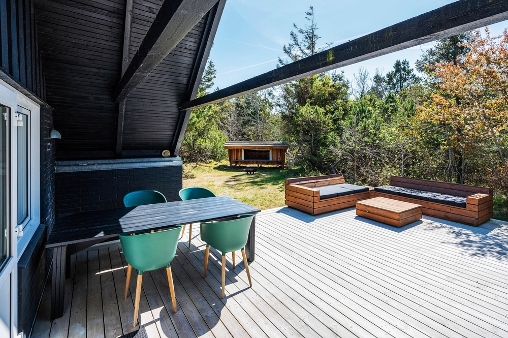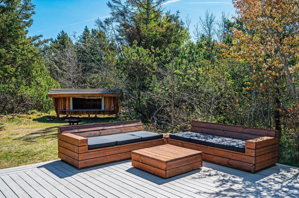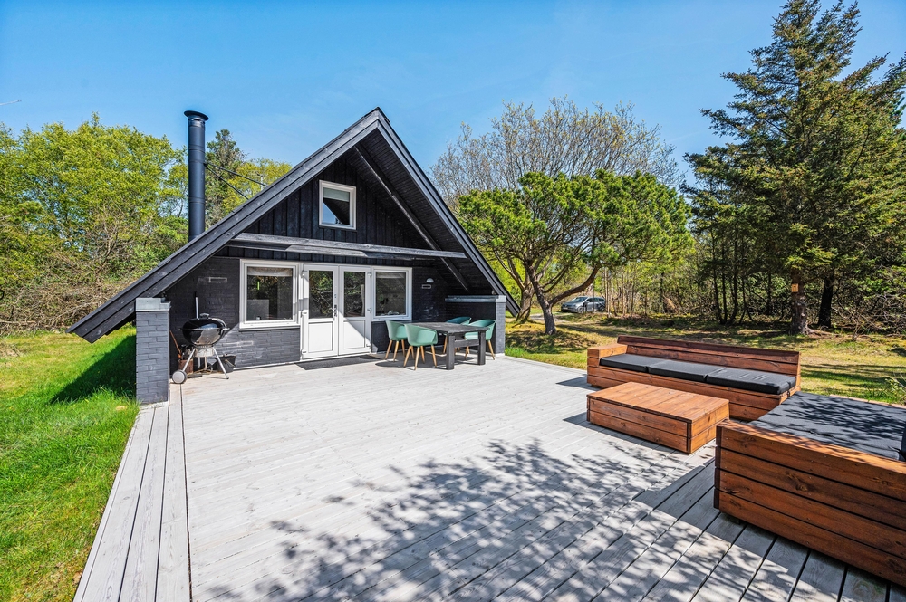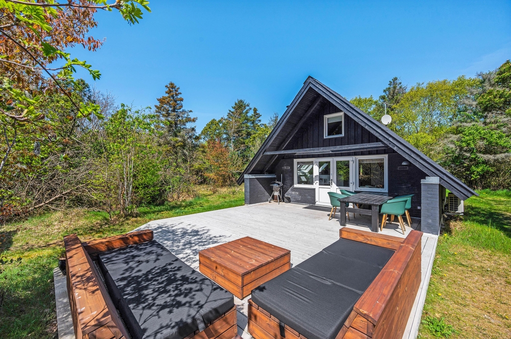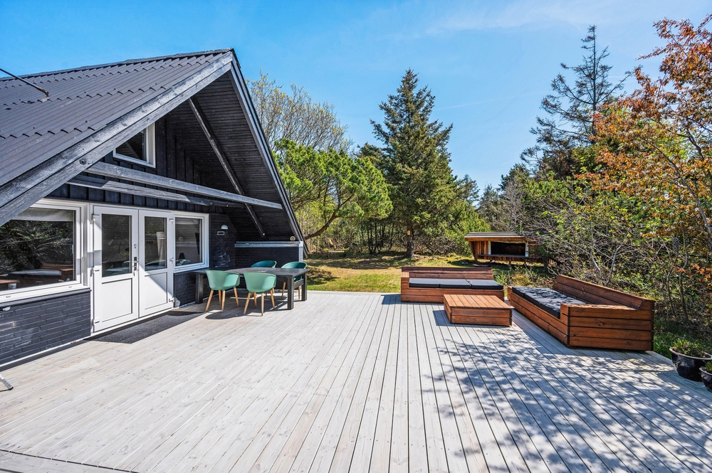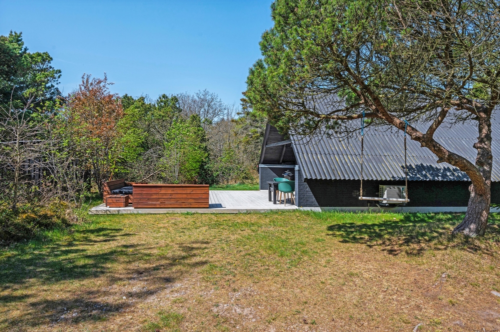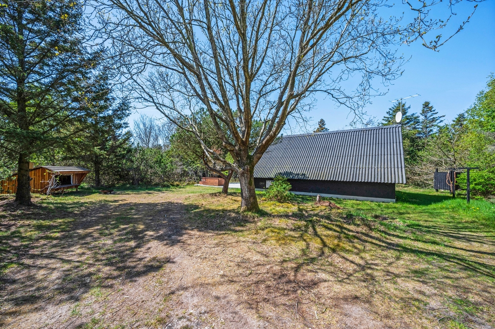 Lodbjerg Hede ist für die schöne Natur und die großen, ungestörten Ferienhausgrundstücke bekannt, was man auch in diesem Ferienhaus merkt: Das Ferienhaus liegt auf einem 2.448 qm² großen Grundstück, das von hohen Tannen umgeben ist. Hier könnt ihr den ganzen Tag ganz ungestört die Sonne genießen. Während ihr euch auf den Liegestühlen zurücklehnt, können die Kinder auf dem Rasen spielen oder zwischen den Bäumen auf Entdeckung gehen.