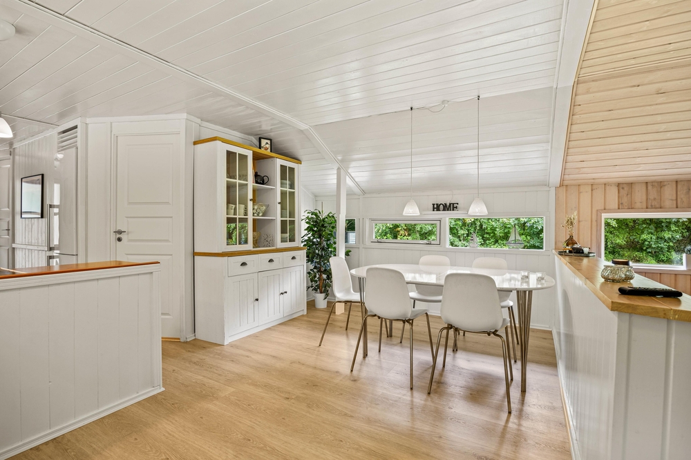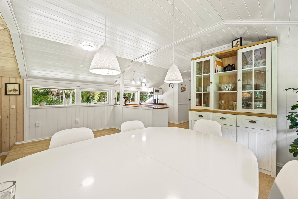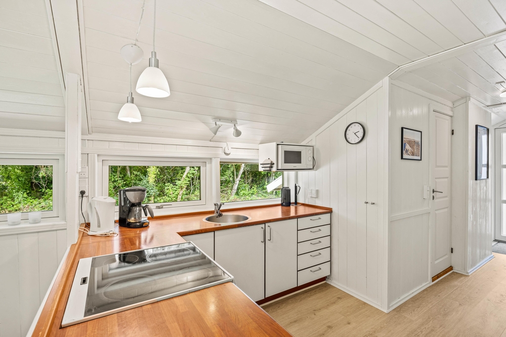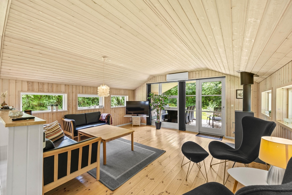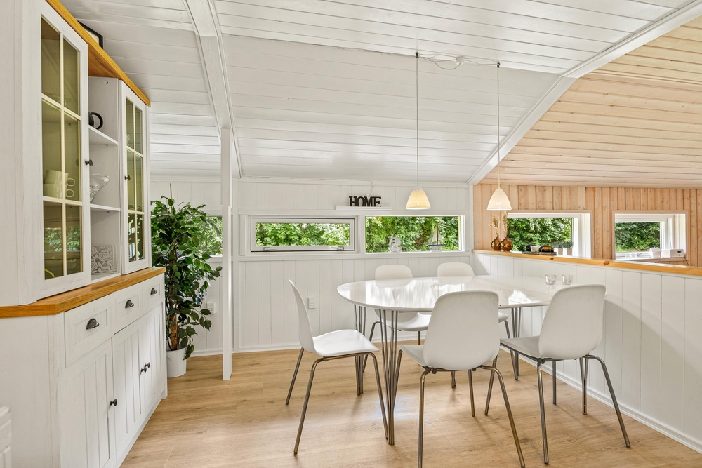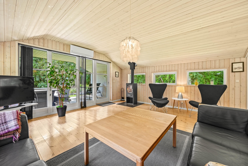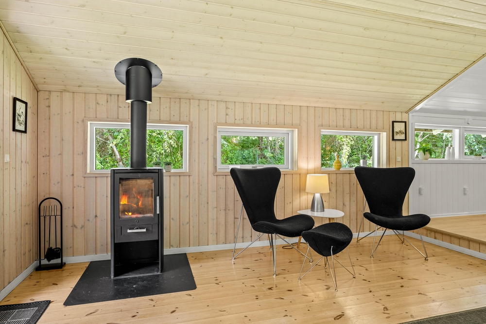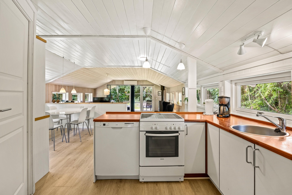 Willkommen in Birkelunden 11 in Jegum Ferieland. Mit seinen 85 qm bietet es Platz für 5 Urlaubsgäste. Das Ferienhaus ist gemütlich eingerichtet. Wie in den meisten dänischen Ferienhäusern üblich, gibt es einen zentralen Wohnraum, der Küche, Essplatz und Wohnzimmer vereint. Durch die großen Fenster kommt viel Licht in den offenen Wohnbereich. Dies sorgt für Gemütlichkeit und Urlaubsstimmung. Durch die offene Gestaltung habt ihr genug Platz für das Familienleben wie z. B. gemeinsames Kochen oder lustige Spieleabende. Im Wohnzimmer sorgt der Kamin für die richtige Urlaubsstimmung. Setzt euch mit einem guten Buch und einer frisch gebrühten Tasse Kaffee in die bequemen Möbel und genießt die gemütliche Wärme des Holzofens.