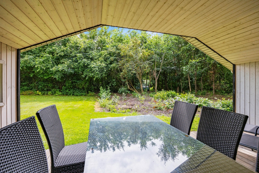 Der Außenbereich sollte an den warmen Sommertagen natürlich genossen werden. Das Ferienhaus im Birkelunden 11 liegt idyllisch, hinter alten Baumbeständen versteckt. Die Aktiven und die Kinder können hier stundenlang auf dem Rasen spielen ? für Entspannung stehen Gartenmöbel und Liegestühle bereit.