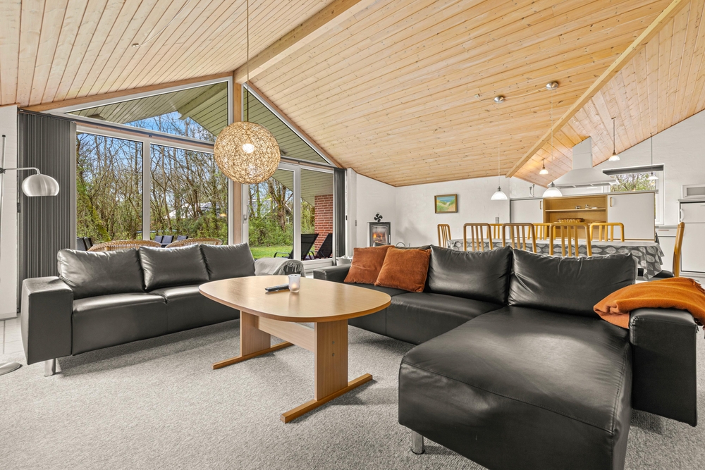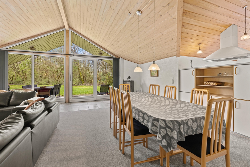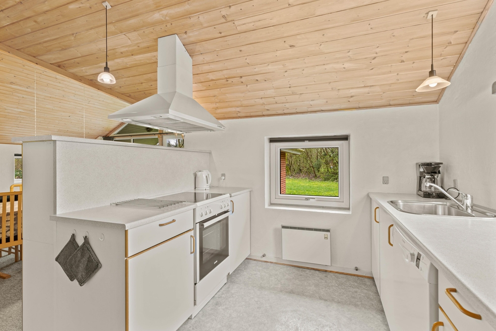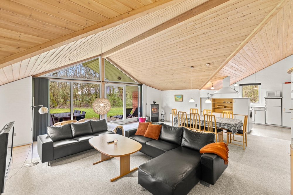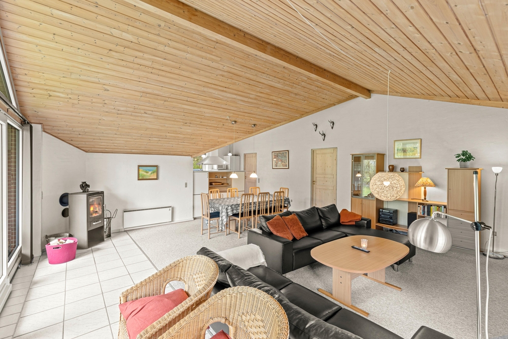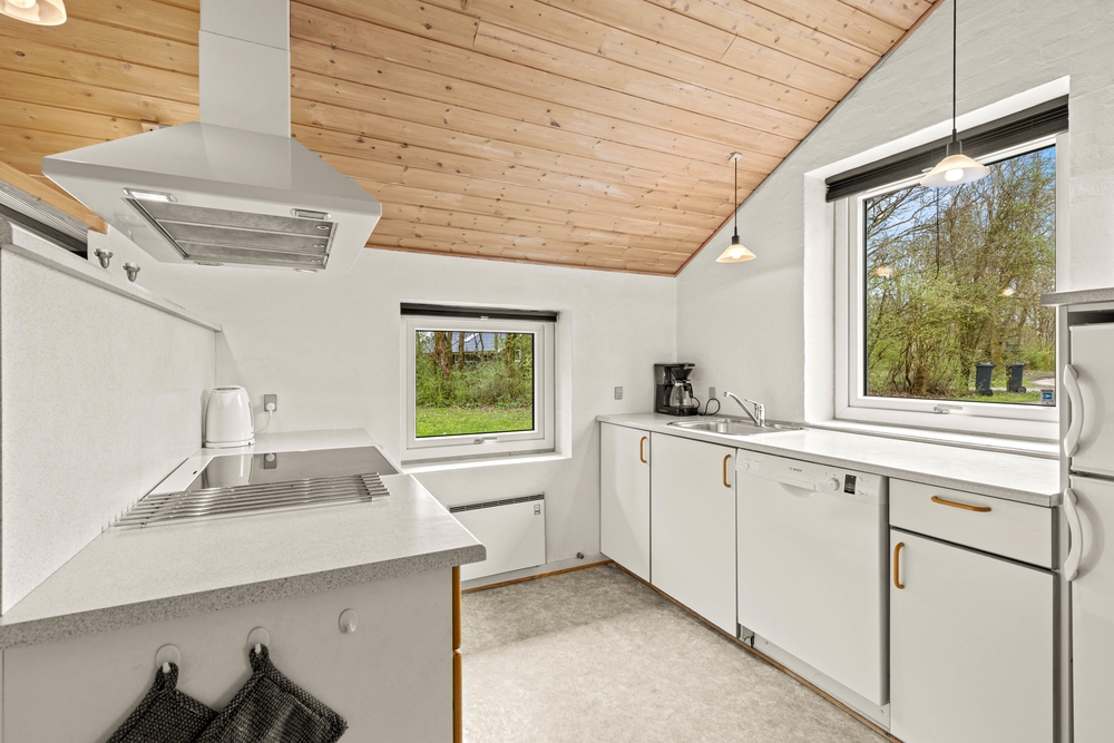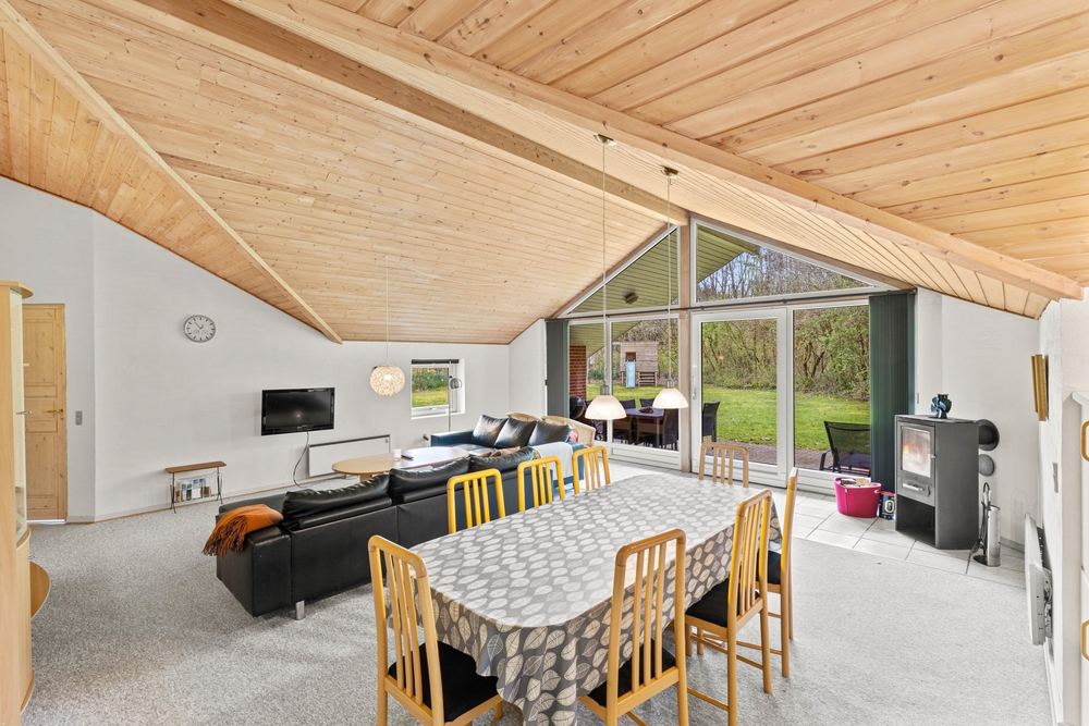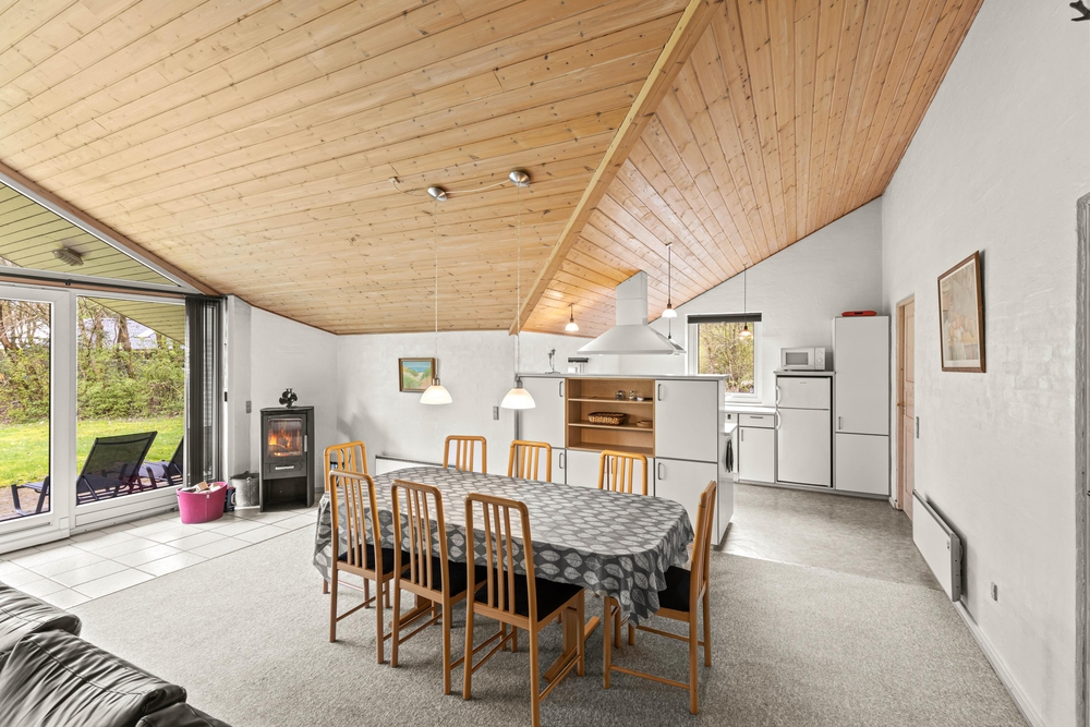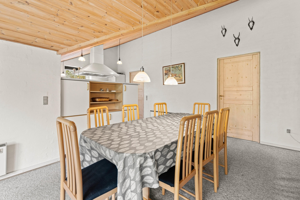 Der Wohnbereich des Ferienhauses in Jegum Ferieland bietet eine warme und behagliche Atmosphäre. Mit einem Kaminofen ausgestattet ist es der ideale Platz um nach einem langen Tag zu entspannen. Die offene Gestaltung von Wohnzimmer, Essbereich und Küche sorgt für ein kommunikatives und gemütliches Beisammensein. Die Küche ist modern eingerichtet und bietet alles was ihr für die Selbstversorgung benötigt. Nach dem Kochen erledigt die Spülmaschine den Abwasch mühelos und euch bleibt mehr Zeit für gemeinsame Gespräche.