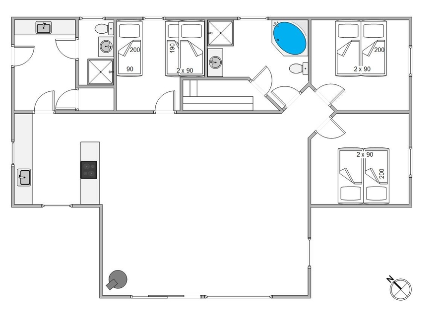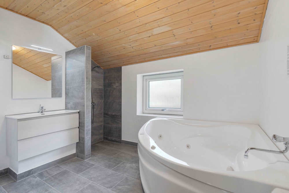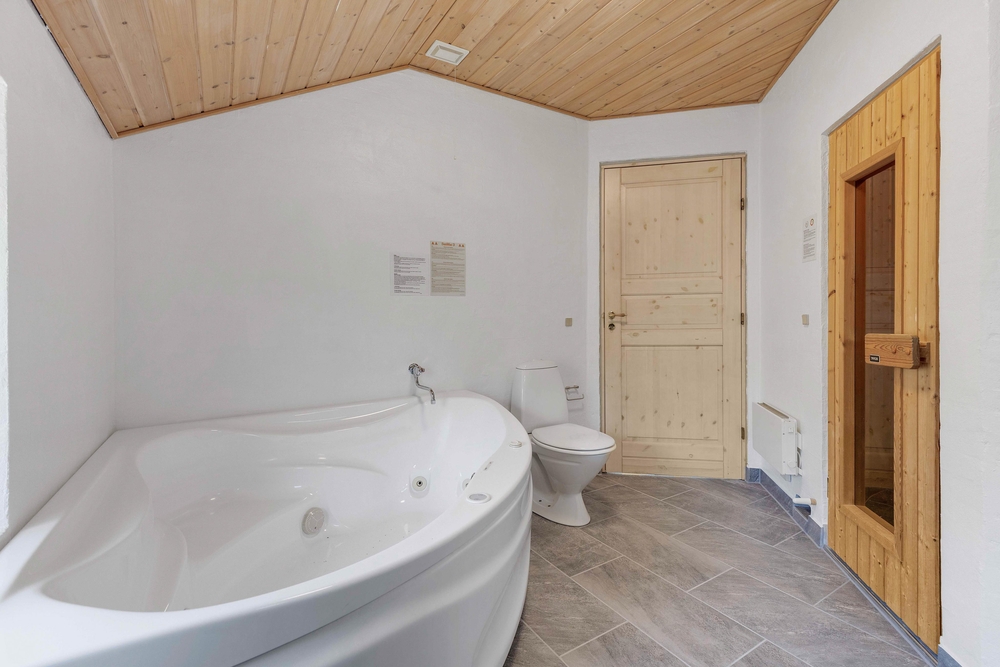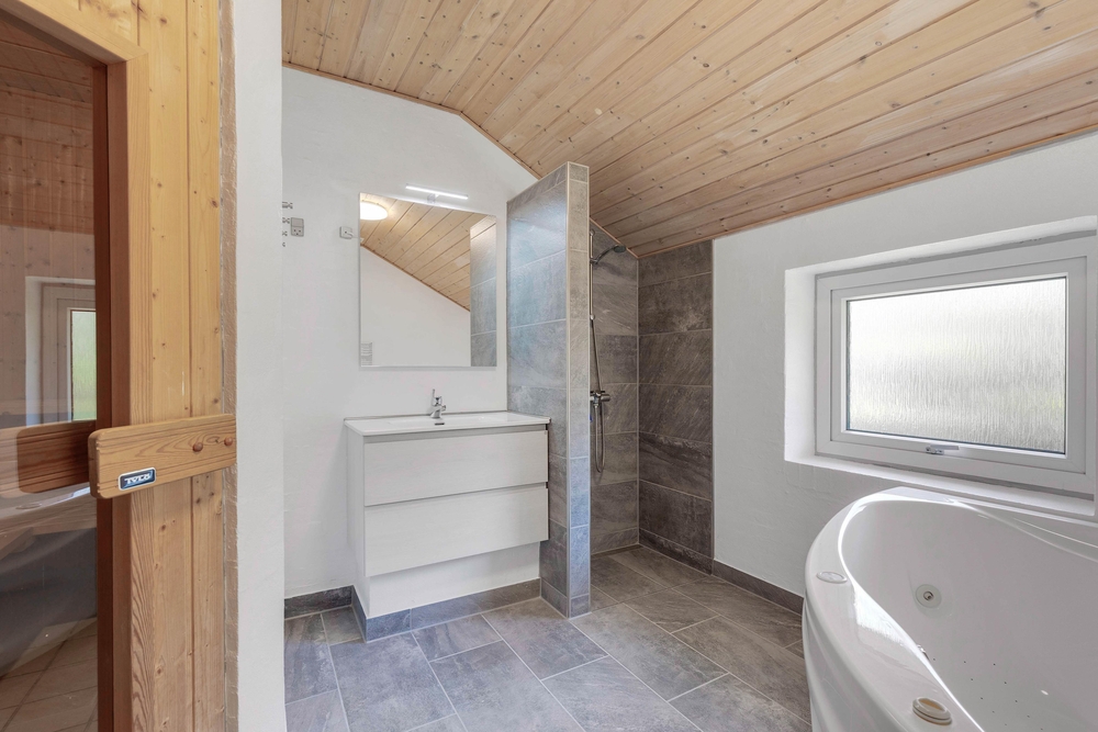 Mit insgesamt 3 Schlafzimmern bietet das Ferienhaus Schlafmöglichkeiten für bis zu 7 Personen. Während 2 der Schlafzimmer jeweils mit 1 Doppelbett ausgestattet sind, verfügt das 3.Schlafzimmer über 1 Etagenbett und 1 Einzelbett. Es eignet sich damit besonders für Kinder. Die 2 Badezimmer sind modern und funktional ausgestattet, sie bieten sowohl Komfort als auch Entspannungsmöglichkeiten nach einem ereignisreichen Tag. Die Fußbodenheizung sorgt an kühleren Tagen für zusätzliche Wärme und einen komfortablen Start in den Tag. Zusätzlich stehen euch eine Sauna und ein Whirlpool zur Verfügung und laden euch ein, nach einem aktiven Tag, zu Entspannen und die wohltuende Wärme zu genießen.