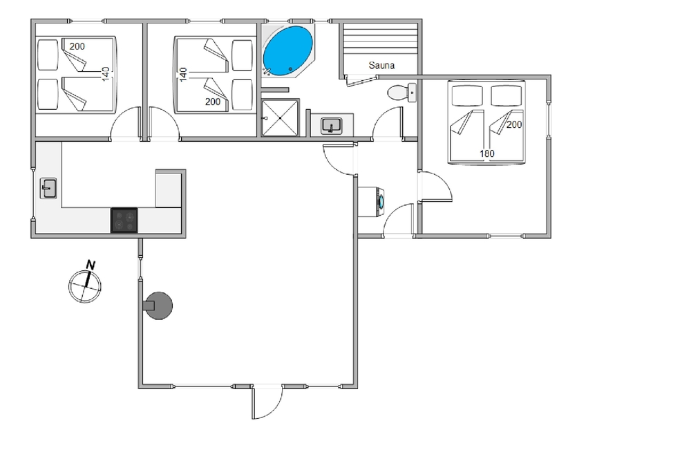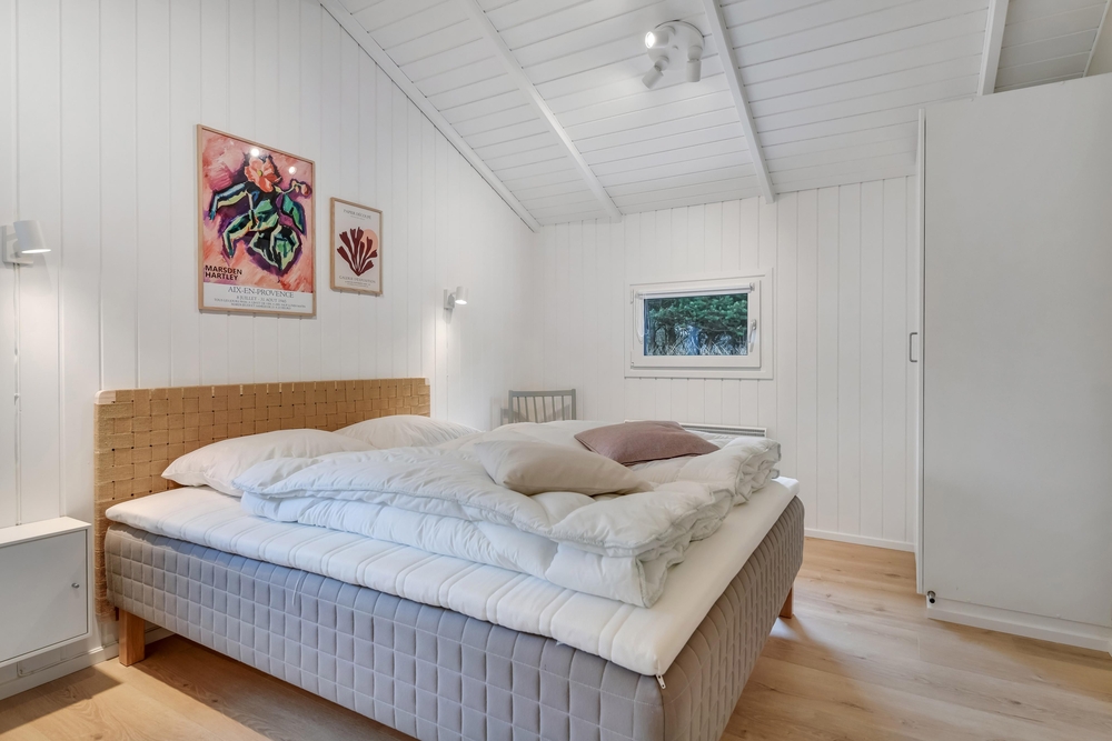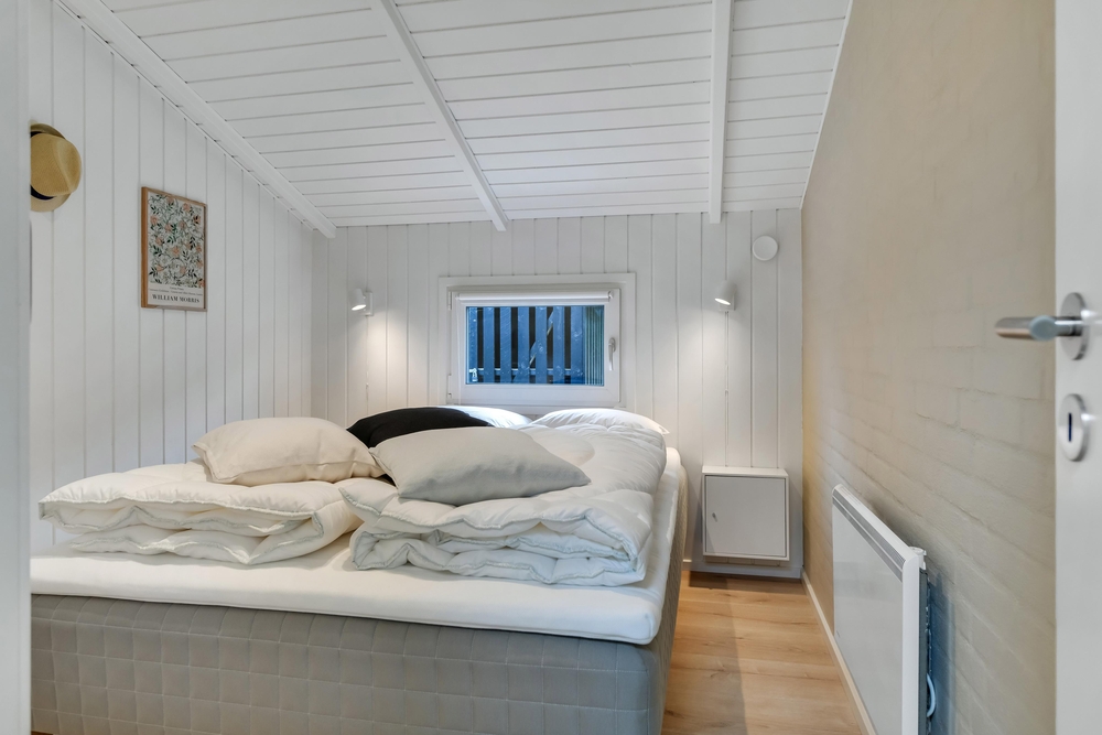 Die 6 Schlafplätze verteilen sich auf drei Schlafzimmer. Auch auf der praktischen Seite verfügt das Ferienhaus über alles, was den entspannten Urlaub noch ein bisschen mehr entspannt. Neben dem schnellen Internet gibt es deutsche und dänische Fernsehkanäle, ein Waschmaschinen- Trockner-Kombigerät und natürlich auch eine Spülmaschine. Darüber hinaus ist eine energiesparende Luft-zu-Luft Wärmepumpe installiert.