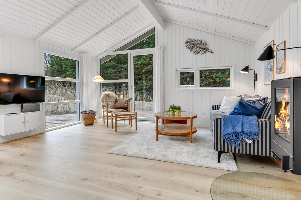 Herzstück dieser 98qm großen westjütländischen Perle ist der offene Wohnbereich mit offener Küche und Essbereich. Hier seid ihr eingeladen mit euren liebsten Menschen zu entspannen, zu spielen, gemeinsame Mahlzeiten zu genießen oder einfach nur mit dem knisternden Kaminofen im Hintergrund ein spannendes Buch zu lesen.