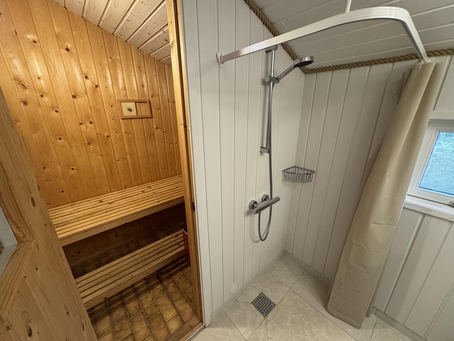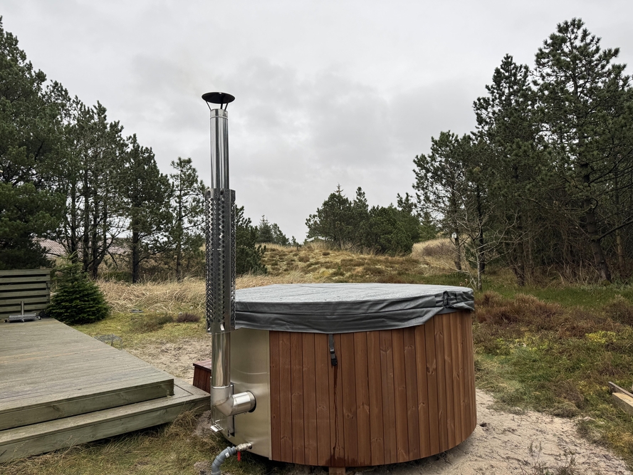 Zusätzliche Entspannung bietet die Badetonne, die zu einem ausgiebigen Bad im Freien einlädt. Das Ferienhaus verfügt auch über eine Außendusche mit kaltem Wasser, die von April bis November genutzt werden kann.