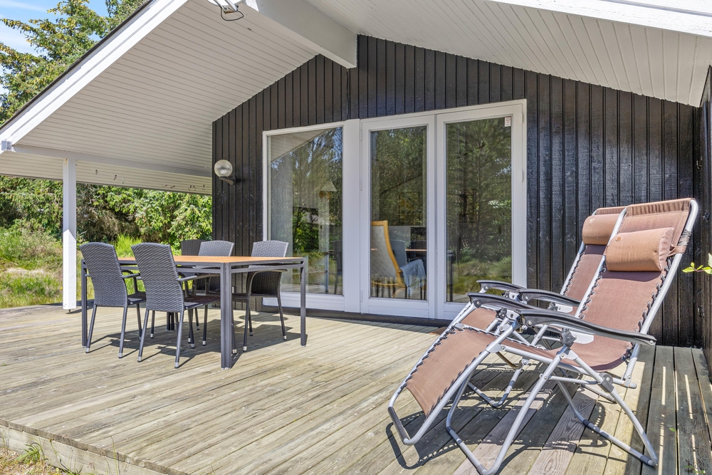 Auf dem 1456 m² großen Naturgrundstück können sich alle Urlaubsgäste austoben und entspannen. Der Außenbereich ist mit bequemen Gartenmöbeln, Sonnenliegen und einem Grill ausgestattet, ideal für gesellige Abende bei einer leckeren Grillmahlzeit. Die großzügige Terrasse, die teilweise überdacht ist, lädt bei jedem Wetter zum Verweilen ein.