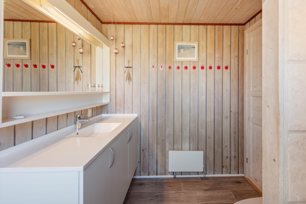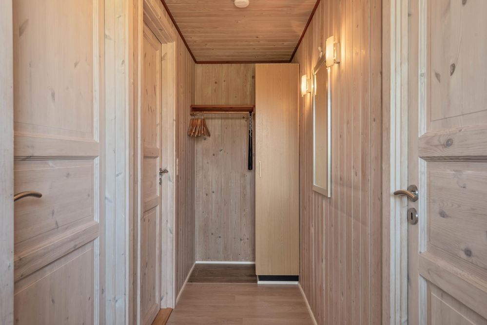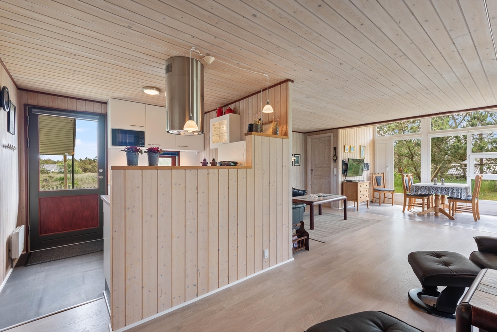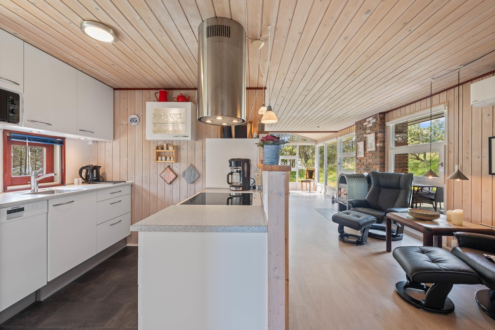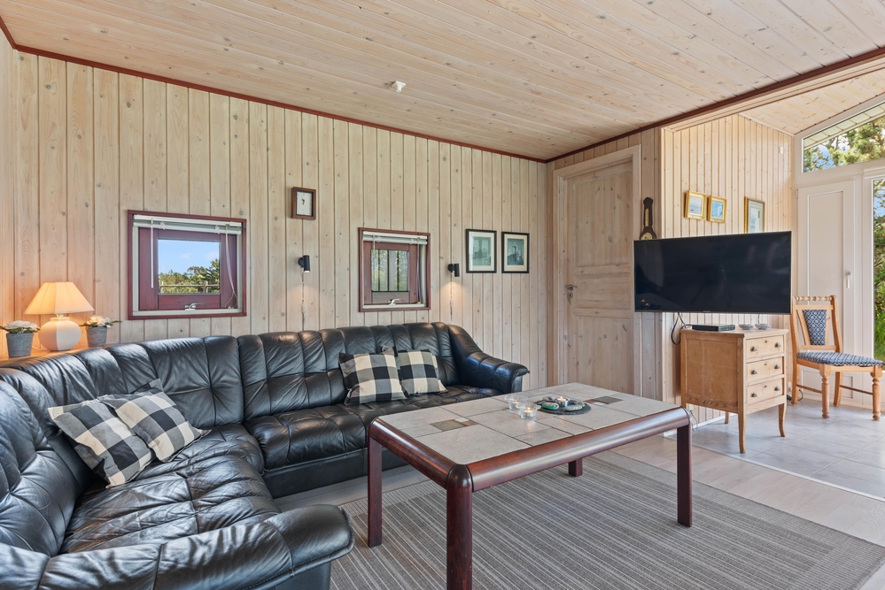 Im Bjerregårdsvej 11 A empfängt euch ein Ferienhaus im typischen skandinavischen Stil, mit holzverkleideten Wänden im Außen- und Innenbereich. Im Wohnraum, der zugleich das Herzstück des Ferienhauses bildet, gibt es zahlreiche Fenster, die viel natürliches Licht hereinlassen. Zusammen mit den holzgetäfelten Wänden und Decken entsteht eine gemütliche Atmosphäre, in der ihr euch direkt wohlfühlen werdet.