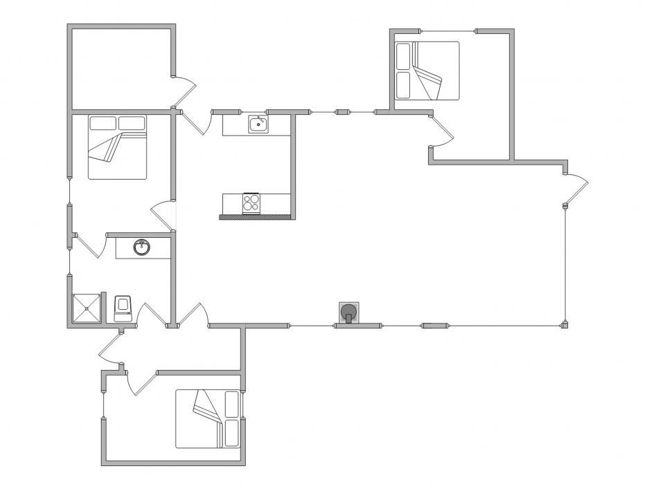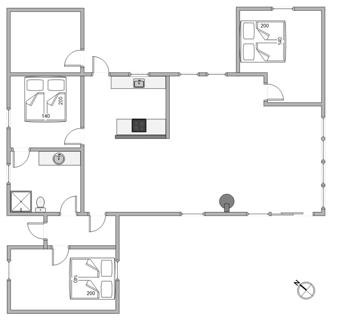 Das Wohnzimmer geht in die offene Küche über, in der ihr unter anderem einen separaten 60-Liter-Gefrierschrank und einen Geschirrspüler findet. Hier könnt ihr das Abendessen vorbereiten, welches später auf dem Grill zubereitet wird. Praktisch ist zudem, dass alle drei Schlafzimmer in unterschiedlichen Ecken des Ferienhauses platziert sind. Diese sind alle mit bequemen Doppelbetten ausgestattet und verfügen über Einbauschränke.