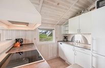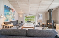 Dieses Ferienhaus hat eine helle, funktionelle Einrichtung mit bequemen Möbeln und hellen Holzwänden- und decken. Die gut ausgestattete Küche, der Essbereich und der Wohnraum befindet sich in einem großen Raum mit schönem Lichteinfall und gemütlicher Atmosphäre. Der Kamin ist zentral platziert und sorgt für wohlige Wärme an kalten Tagen. Im Wohnzimmer befindet sich außerdem eine Schlafnische, die zum entspannen einlädt.