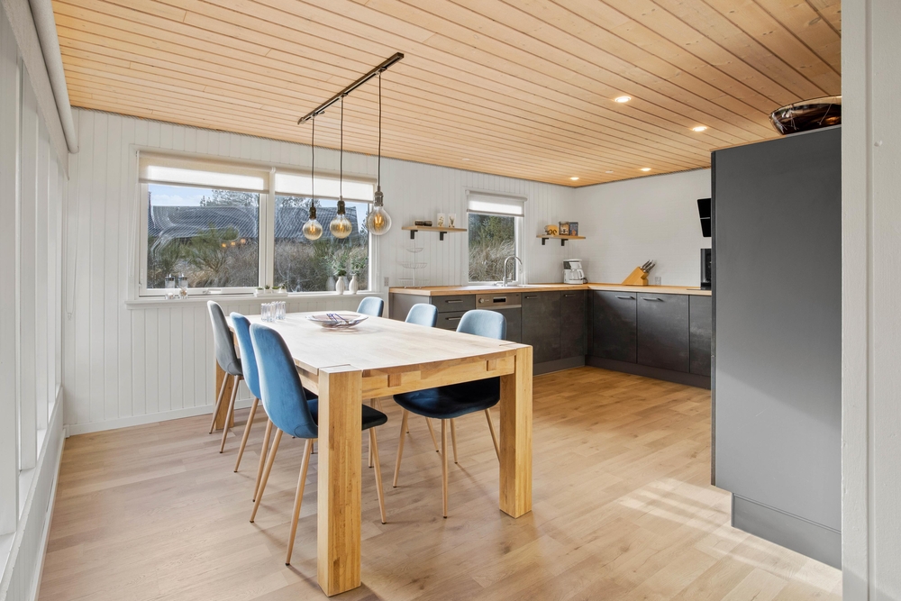Das schöne Ferienhaus im Bjerregårdsvej wurde liebevoll von den Eigentümern eingerichtet, so dass man sich direkt wohlfühlt. Das bequeme Sofa lädt zum Entspannen ein, z. B. bei einem geselligen Fernsehabend oder einem guten Buch und einem Glas Wein. Der Pelletkamin sorgt für eine besondere Wohlfühlatmosphäre. Aber auch eine energiesparende Wärmepumpe steht euch hier zum Heizen zur Verfügung.