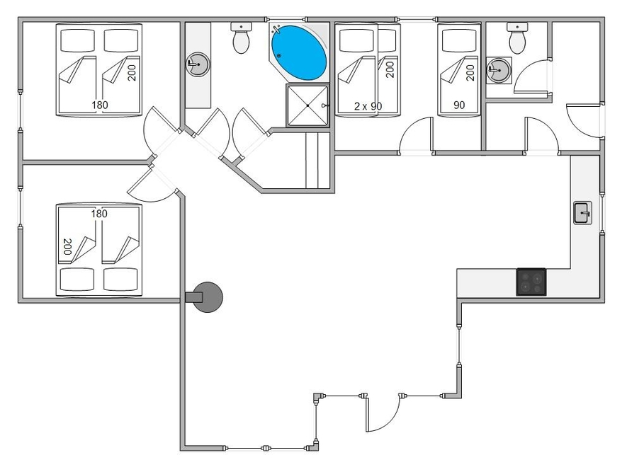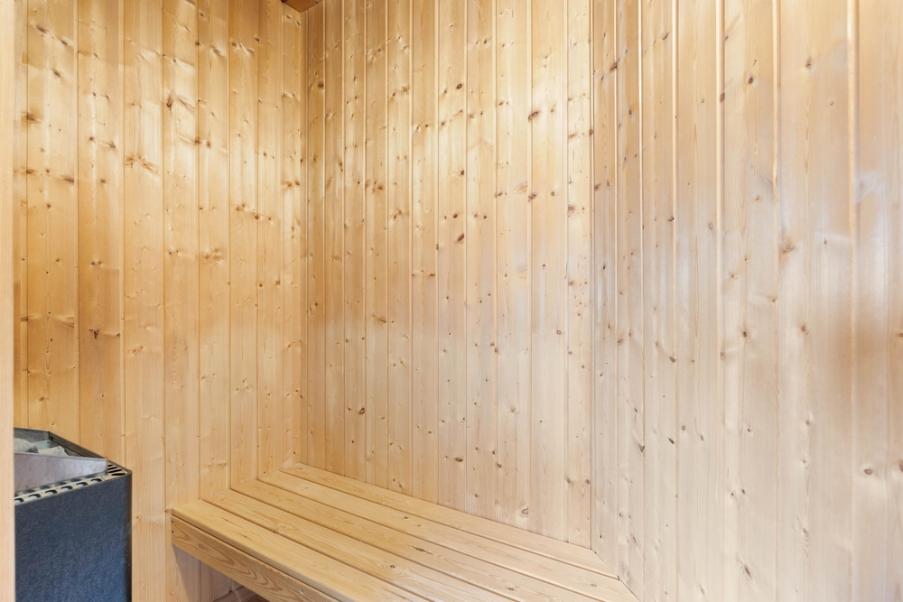 Der Whirlpool und die Sauna befinden sich im Badezimmer des Ferienhauses, und praktischerweise verfügt das Ferienhaus noch über eine Gästetoilette. Sowohl das Badezimmer als auch die Gästetoilette sind mit Fußbodenheizung ausgestattet. Als kleinen Pluspunkt gibt es noch eine Waschmaschine und einen Trockner.