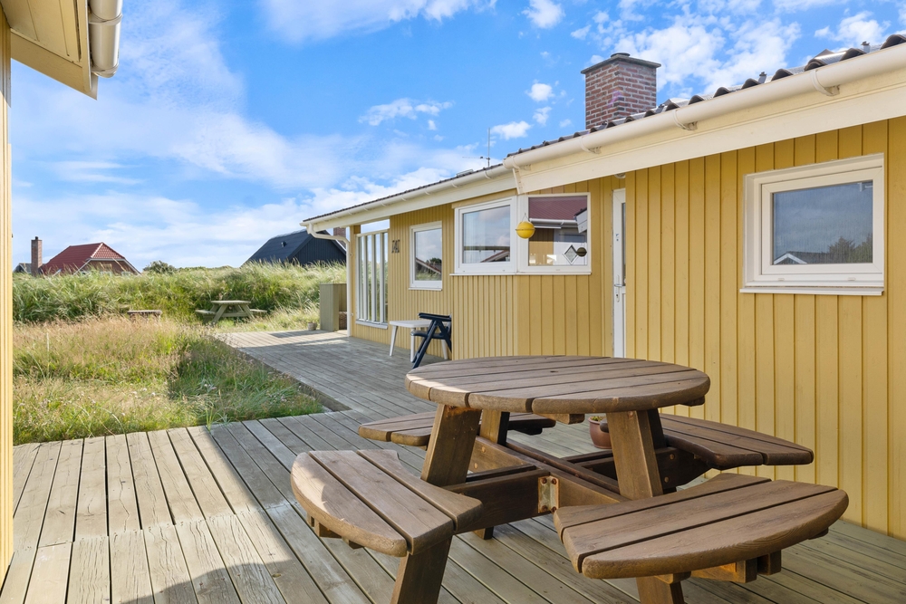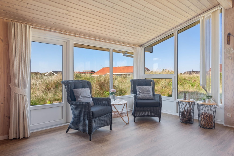 Gemütliches Ferienhaus, in dem du einen entspannten Urlaub mit der Familie verbringen kannst. Der Wintergarten kann das ganze Jahr über genutzt werden, von hier hast du einen tollen Blick auf die Dünen. An warmen Tagen kannst du die Sonne und die frische Luft auf den Terrassen genießen.