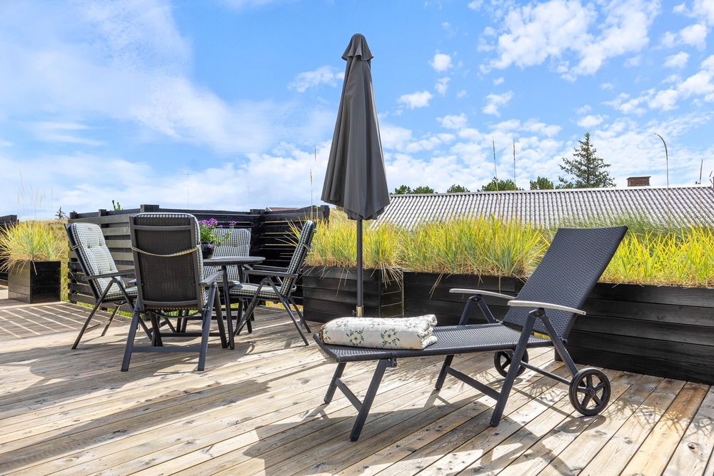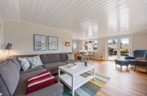 Im gemütlichen Wohnzimmer mit den großen Fenstern, von wo aus man die wunderschöne Natur im Blick hat, könnt ihr komplett abschalten und auf dem komfortablen Sofa einfach mal die Füße hochlegen und gar nichts tun. Am Abend wollt ihr Fernsehen? Überhaupt kein Problem, ein Flachbildschirm mit dänischen und deutschen Programmen steht euch hier zur Verfügung. Im hellen Wohnzimmer wurde eine Wärmepumpe eingebaut, damit ihr Stromkosten spart.