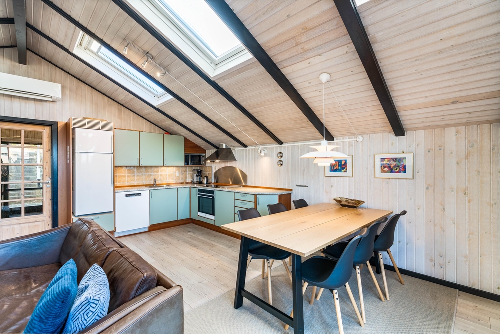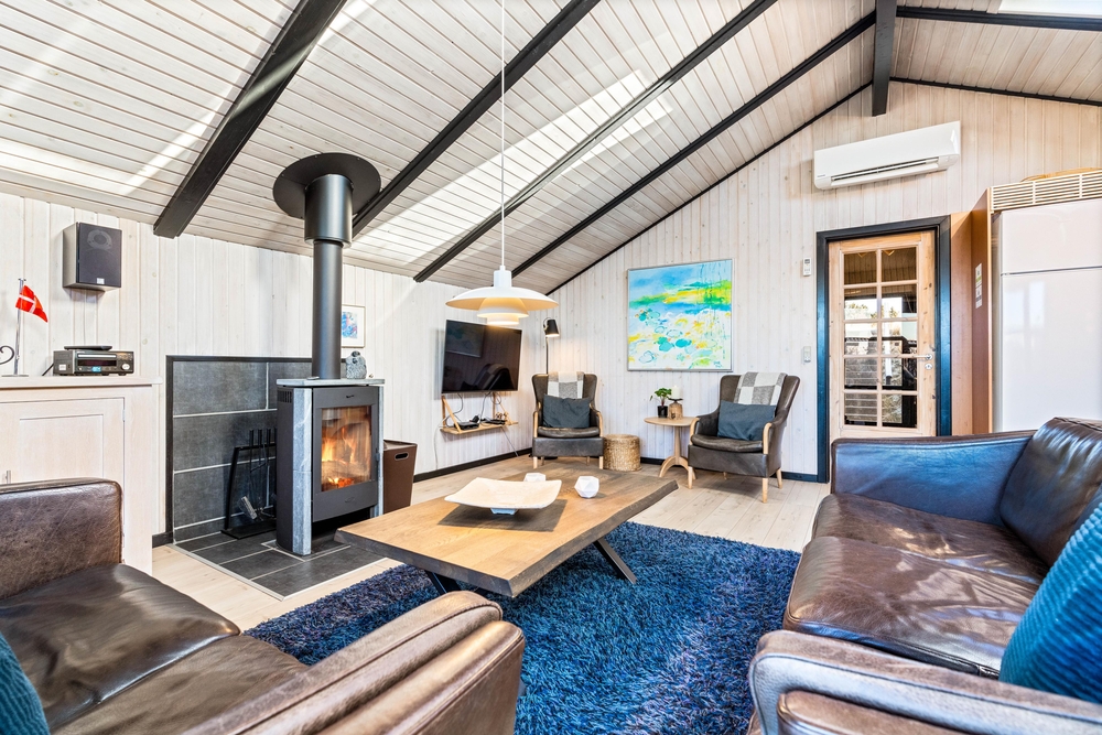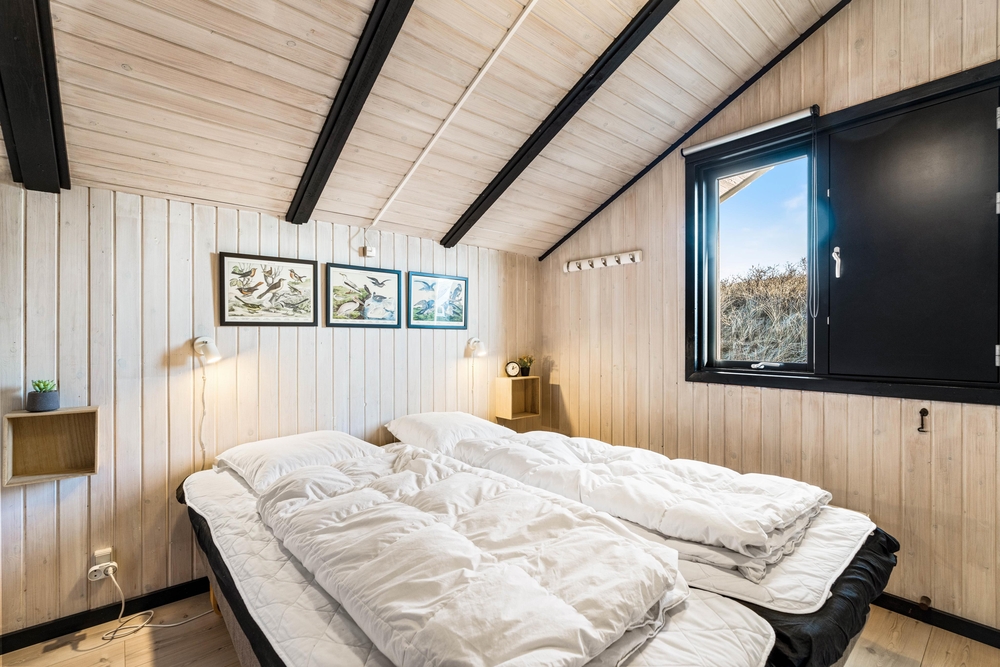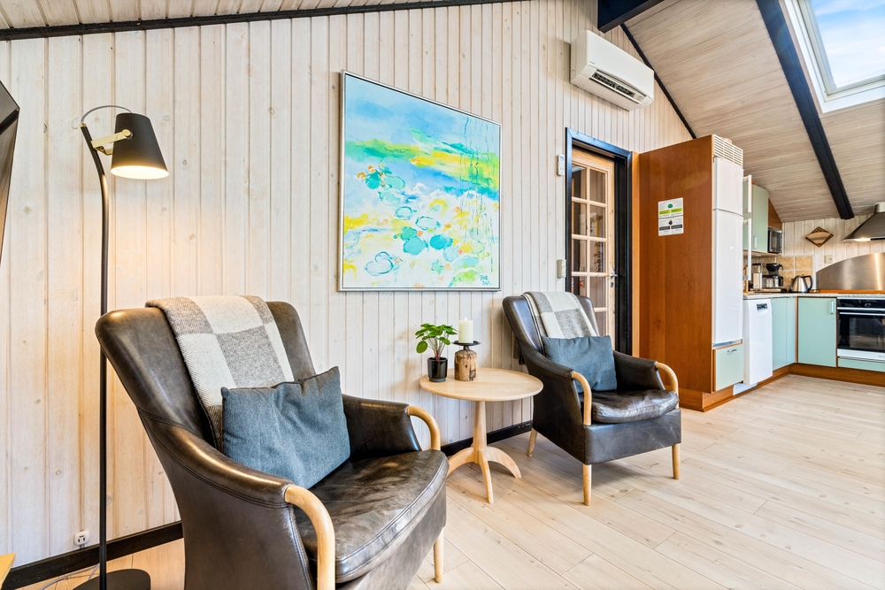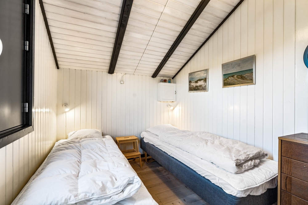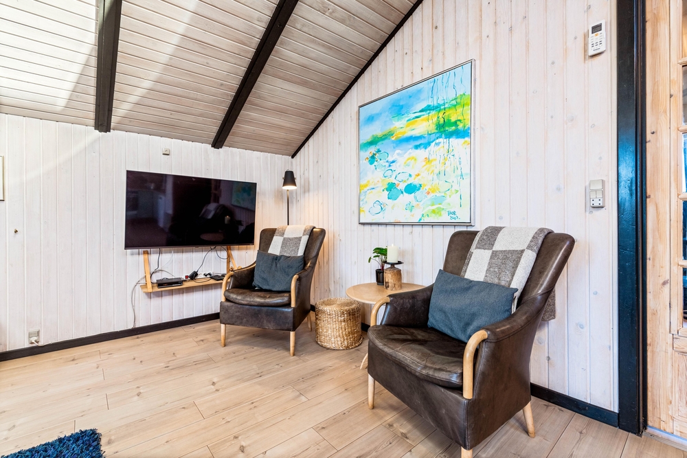 Das Ferienhaus ist mit 2 guten Schlafzimmern eingerichtet. Beide haben Doppelbetten, wovon ein Bett in 2 Einzelbetten umgewandelt werden kann. Schönes und gepflegtes Badezimmer mit Duschekabine. Die neuere Küche ist offen verbunden mit dem gemütlichen Wohnzimmer, welches mit schönen Möbeln, Holzfußboden und Flachbildschirm eingerichtet ist. Zudem ist das Haus mit einer energisparenden Wärmepumpe und kostenloser W-LAN Internetverbindung ausgestattet.