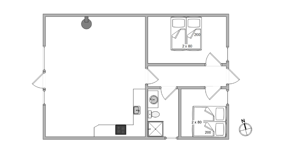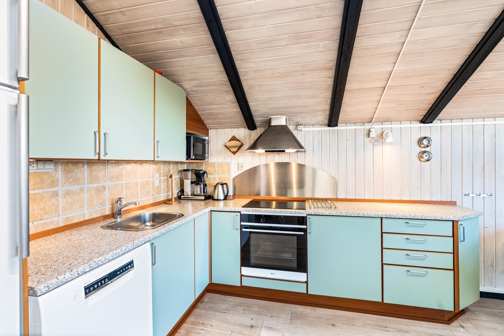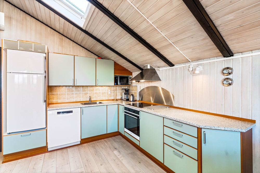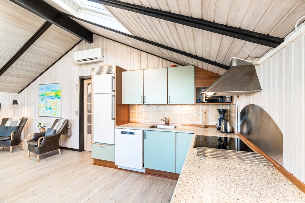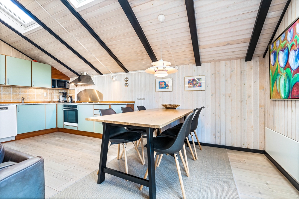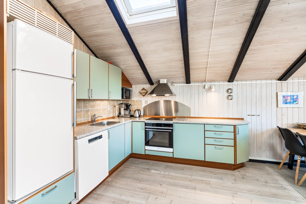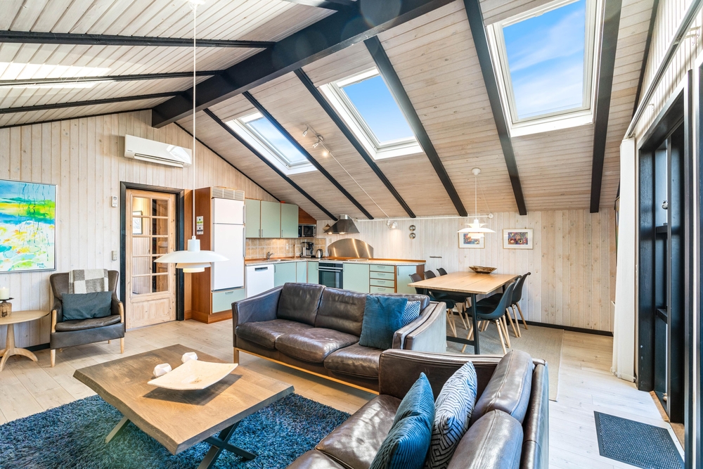 Das Ferienhaus ist mit 2 guten Schlafzimmern eingerichtet. Beide haben Doppelbetten, wovon ein Bett in 2 Einzelbetten umgewandelt werden kann. Schönes und gepflegtes Badezimmer mit Duschekabine. Die neuere Küche ist offen verbunden mit dem gemütlichen Wohnzimmer, welches mit schönen Möbeln, Holzfußboden und Flachbildschirm eingerichtet ist. Zudem ist das Haus mit einer energisparenden Wärmepumpe und kostenloser W-LAN Internetverbindung ausgestattet.